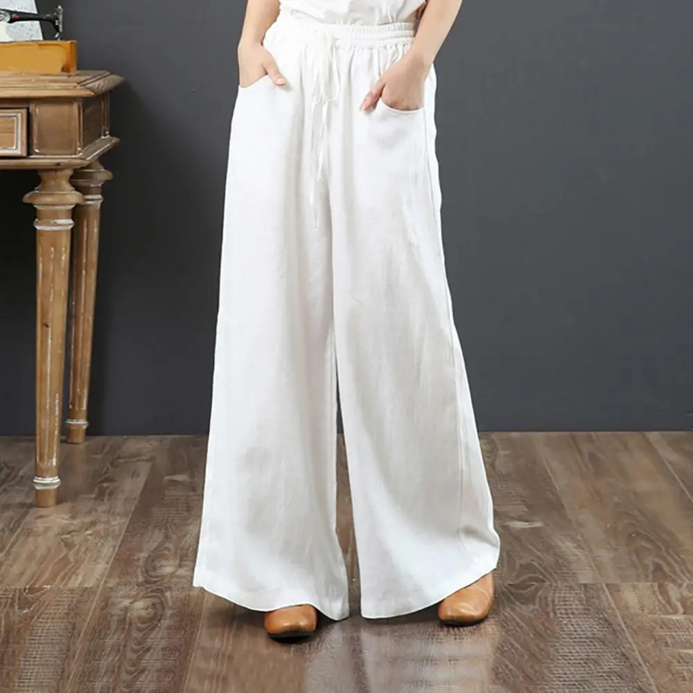 Дропшиппинг 70%! Женские винтажные повседневные хлопковые льняные брюки с высокой талией Прямые брюки с карманами, однотонные женские