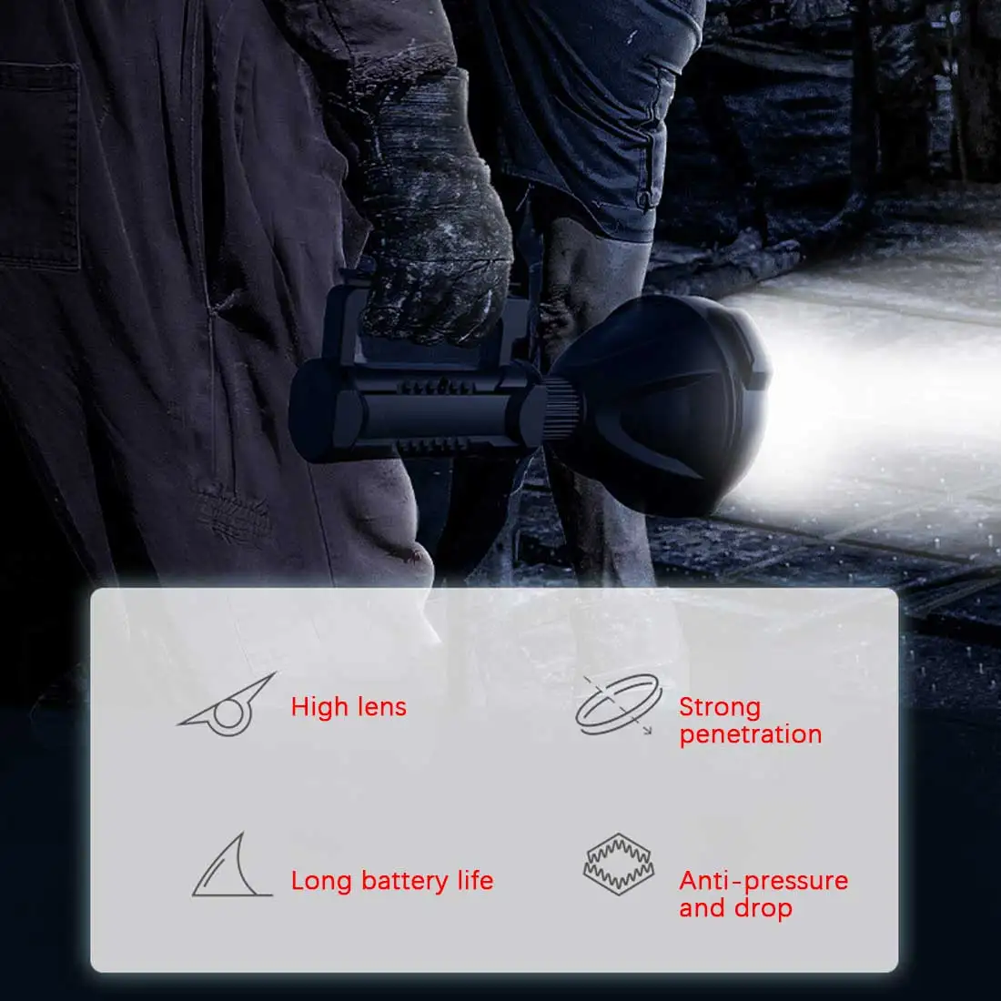 [IP65 Водонепроницаемый]Концентрирующий фонарик изготовлен из высокопрочного АБС-пластика. Водонепроницаемый уровень IPX65 может предотвратить разбрызгивание цепи водой со всех сторон. Перезаряжаемый водонепроницаемый прожектор очень подходит для кемпинга, пеших прогулок, рыбалки, моря, охоты, аварийной ситуации и других видов освещения, активного отдыха.