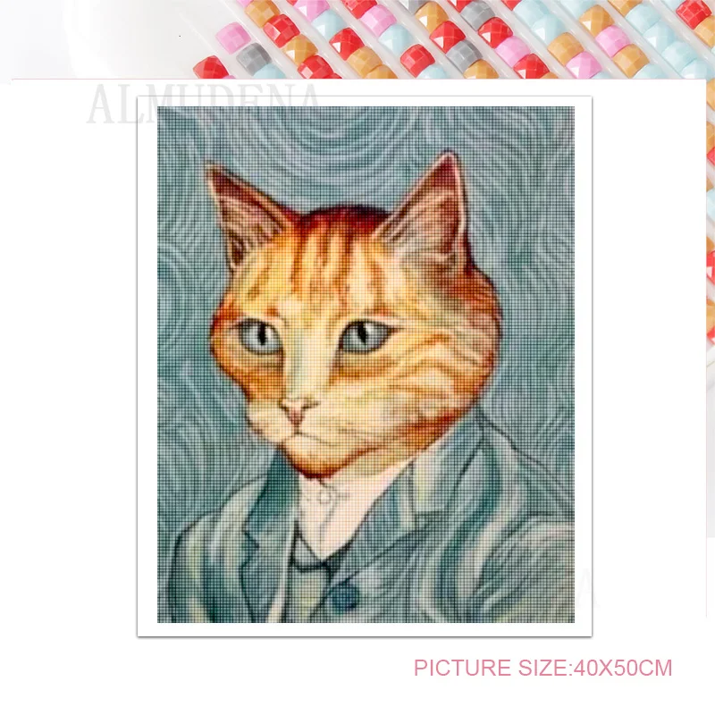 Животное кошка портрет картина светлая Роскошная алмазная живопись вышивка крестиком инкрустированная бисером вышивка украшение для дома круглый алмаз
