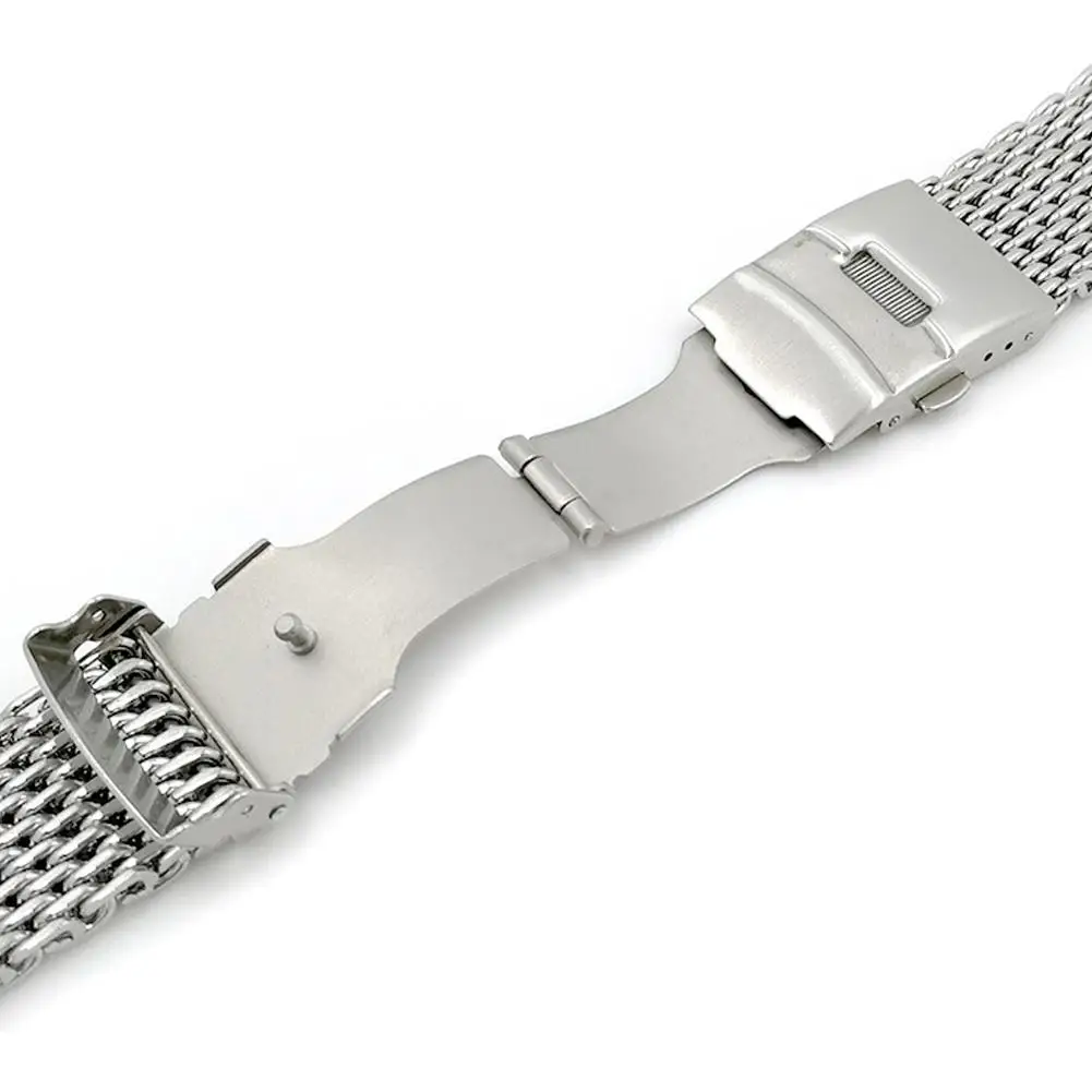 Ремешок стальной для наручных часов, Серебристый браслет с сеткой акулы для мужчин и женщин, 18 мм 20 мм 22 мм 24 мм
