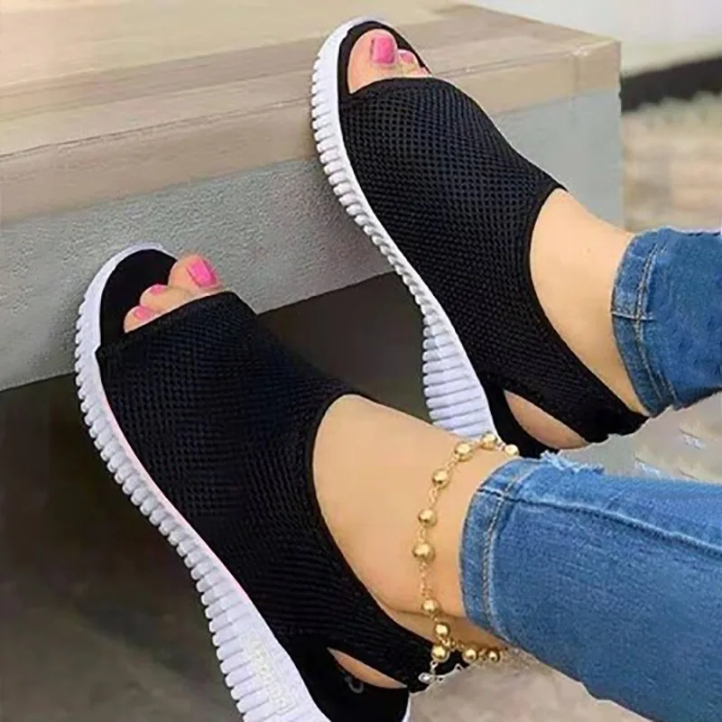 Сандалии женские сетчатые, дышащие босоножки на плоской подошве, Повседневная Удобная мягкая обувь с открытым носком, большие размеры, лето