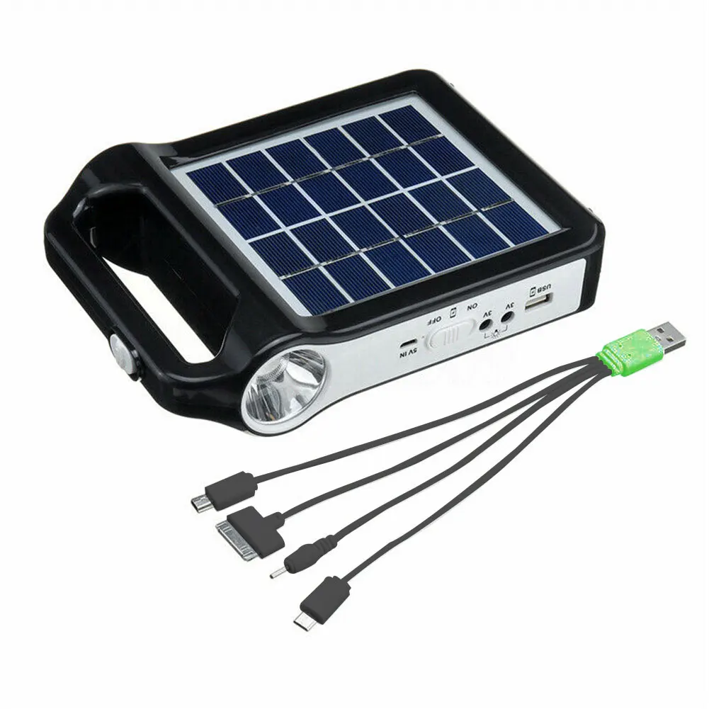 Характеристика:1. Многоразовый солнечный генератор, солнечная зарядка, защита окружающей среды и энергосбережение, вы можете использовать его в любом месте, когда есть достаточное количество солнечного света.2. Оснащенный usb-кабелем для зарядки, вы можете легко заряжать ваши электронные продукты встроенным аккумулятором большой емкости, вы можете заряжать мобильные телефоны, MP3, MP4, цифровые камеры и другие электронные продукты.3. Белый светодиодный светильник и светильник er, лучше всего, чтобы принести Вам светильник с низким энергопотреблением, более прочный в использовании, постоянный ток IC драйвер, хорошая стабильность.4. Лучше всего подходит для внутреннего освещения, наружного освещения, отключения питания, кемпинга, домашнего освещения, районов без электричества.Спецификация:Входное напряжение: 220 ВВыходное напряжение: 3/5VЕмкость аккумулятора: 2400 мАчВремя работы аварийной лампы: 10h-12hВыходная мощность: 9 ВтЧастота: 50-60 ГцВыходной ток: 3AМатериал: АБС-пластикСолнечная панель: 6 В/2 ВтРазмер: 205x150x50 ммЦвет USB: случайный