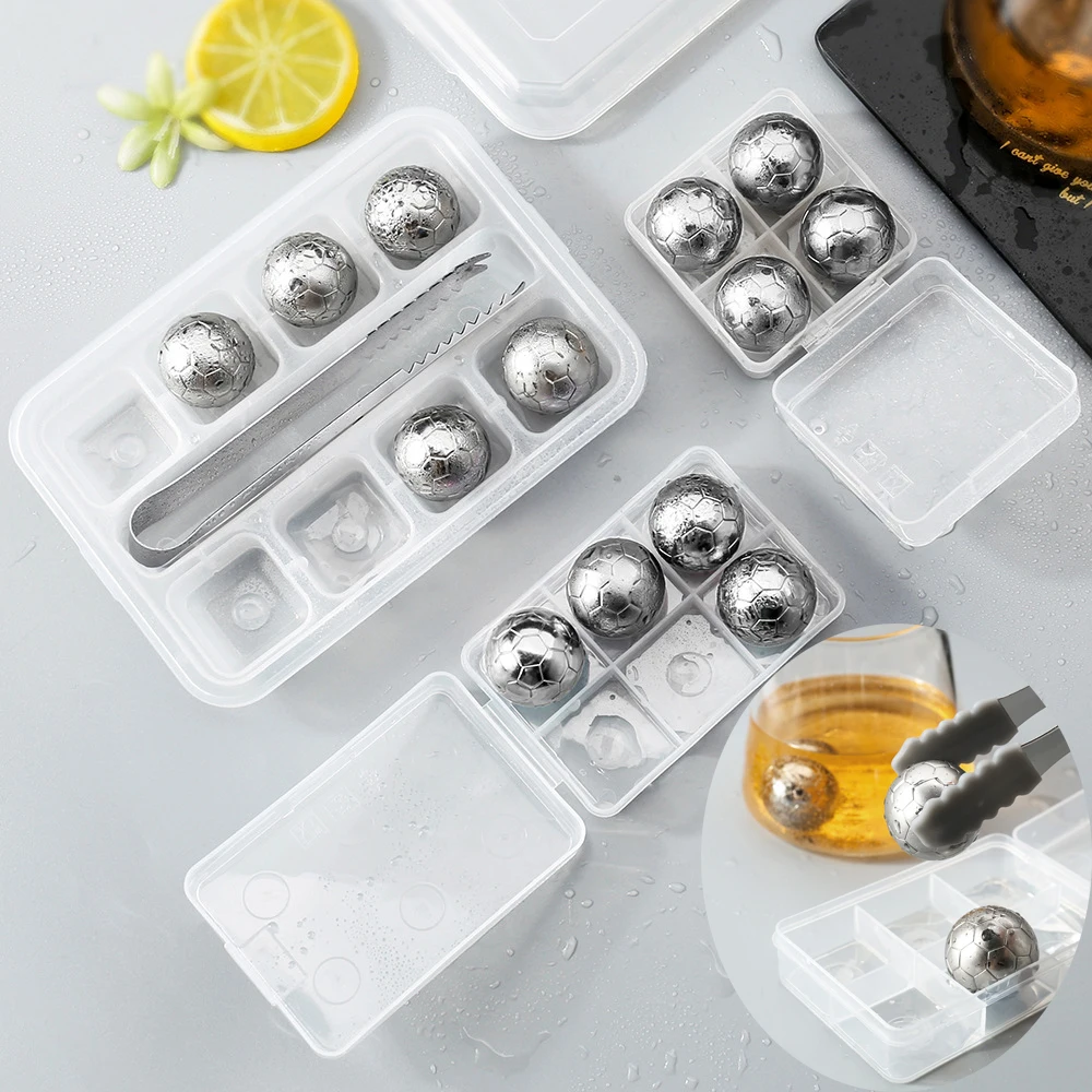 Набор кубиков льда из нержавеющей стали, охладители для вина и пива, металлический быстрозамороженный шар, многоразовые охлаждающие инструменты, футбольный мяч, камни для виски