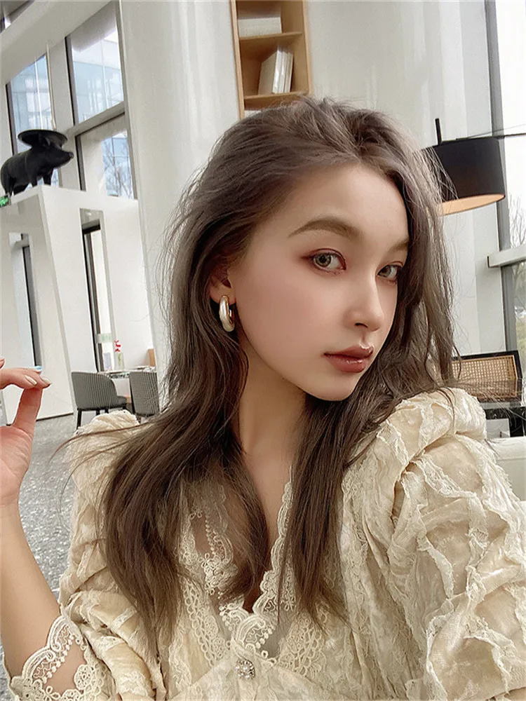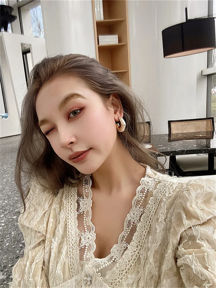 Модные золотые геометрические серьги для женщин, корейские модные о...