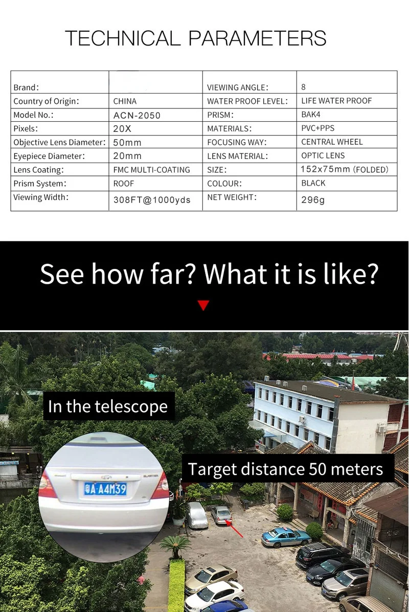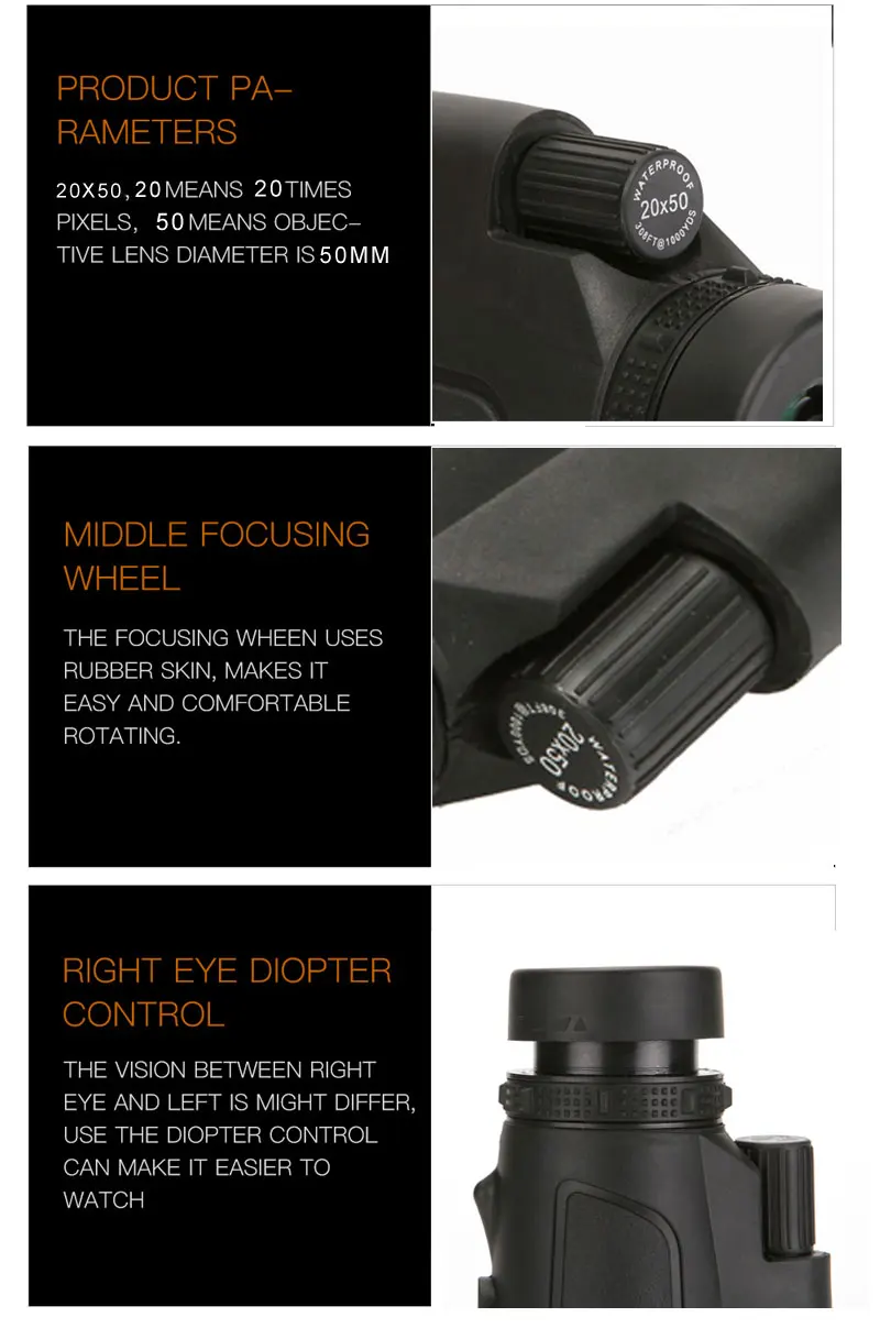 Монокуляр 20x50 мощный бинокль высококачественный зум отличный ручной телескоп lll ночное видение военный HD Профессиональный охотничий