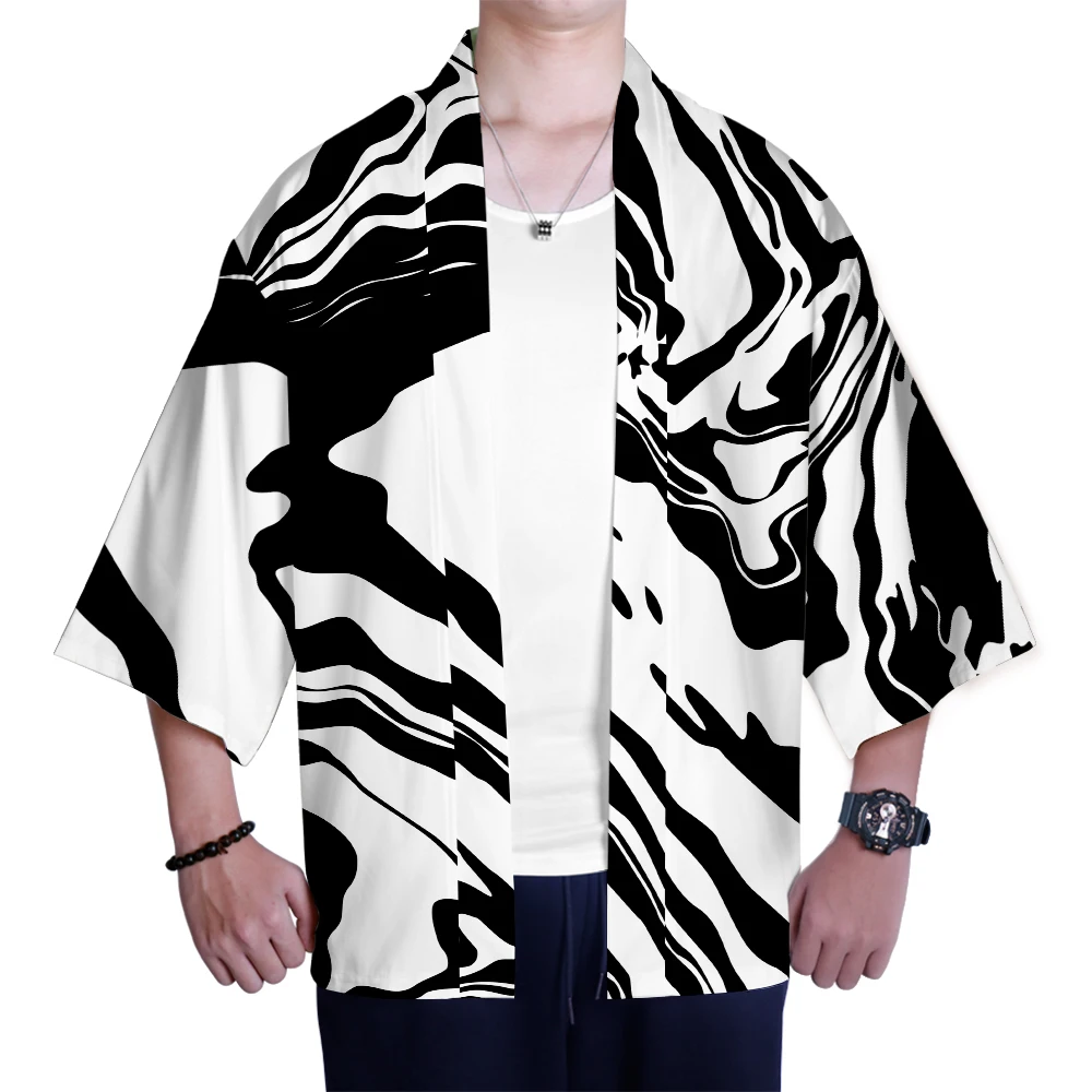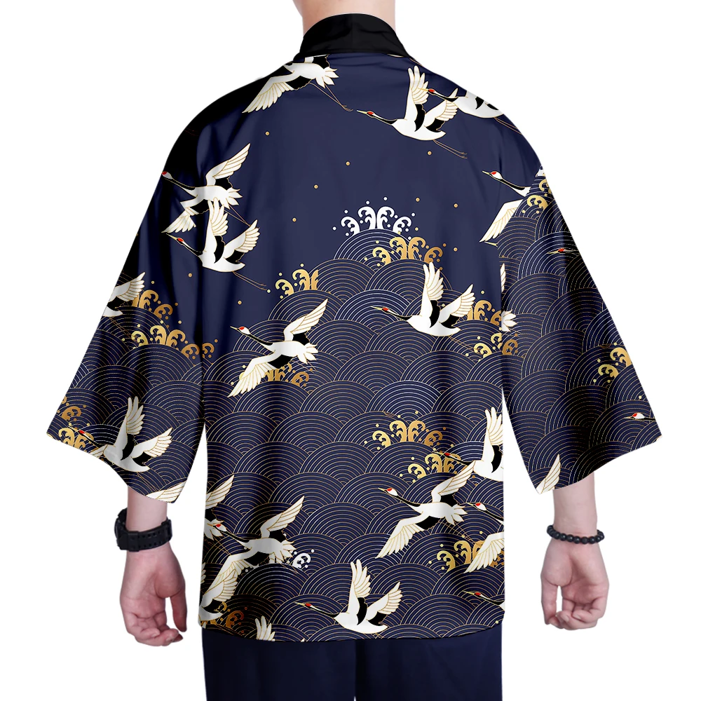 Кимоно мужское в этническом стиле, тонкое свободное в японском стиле The Great Wave Off Kanagawa, традиционный Восточный этнический кардиган в стиле унисекс, топы укиё-э