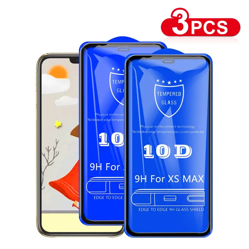 Закаленное стекло 10D для iPhone 12, 11 Pro, 7, 8 Plus, XR, X, XS Max, 3 шт.