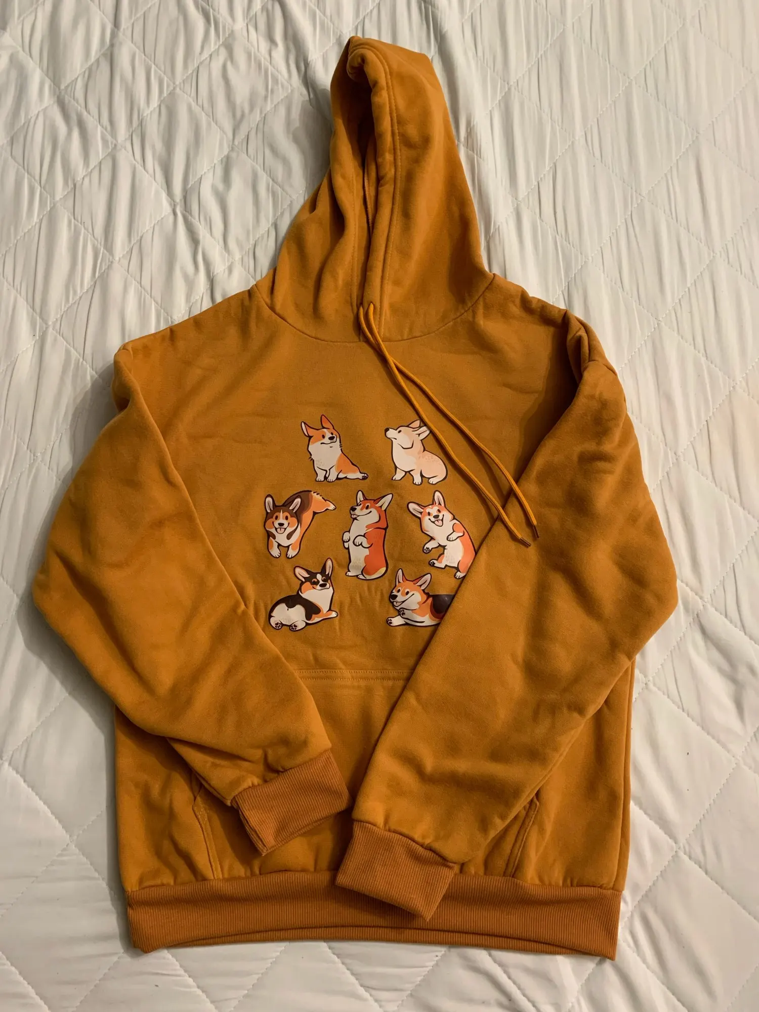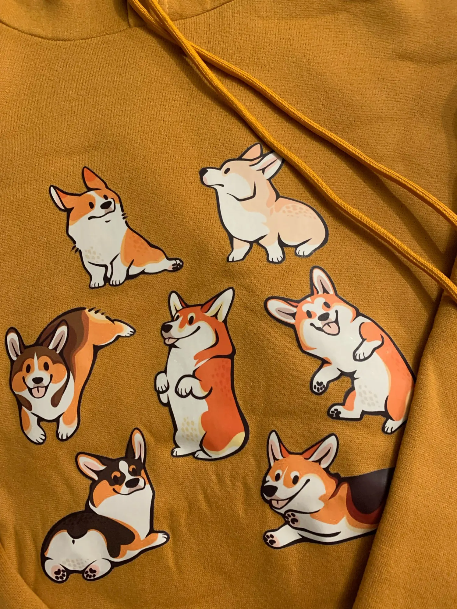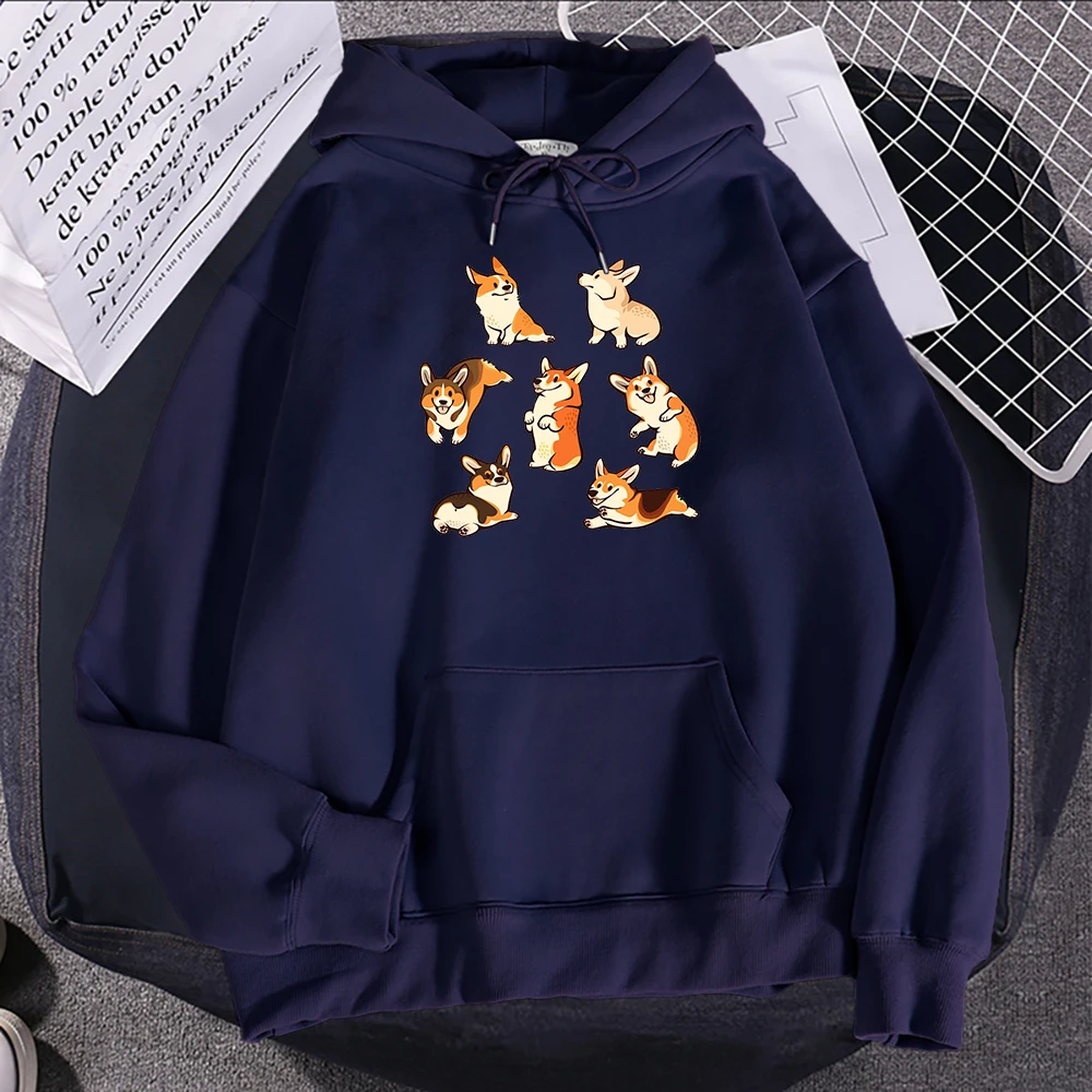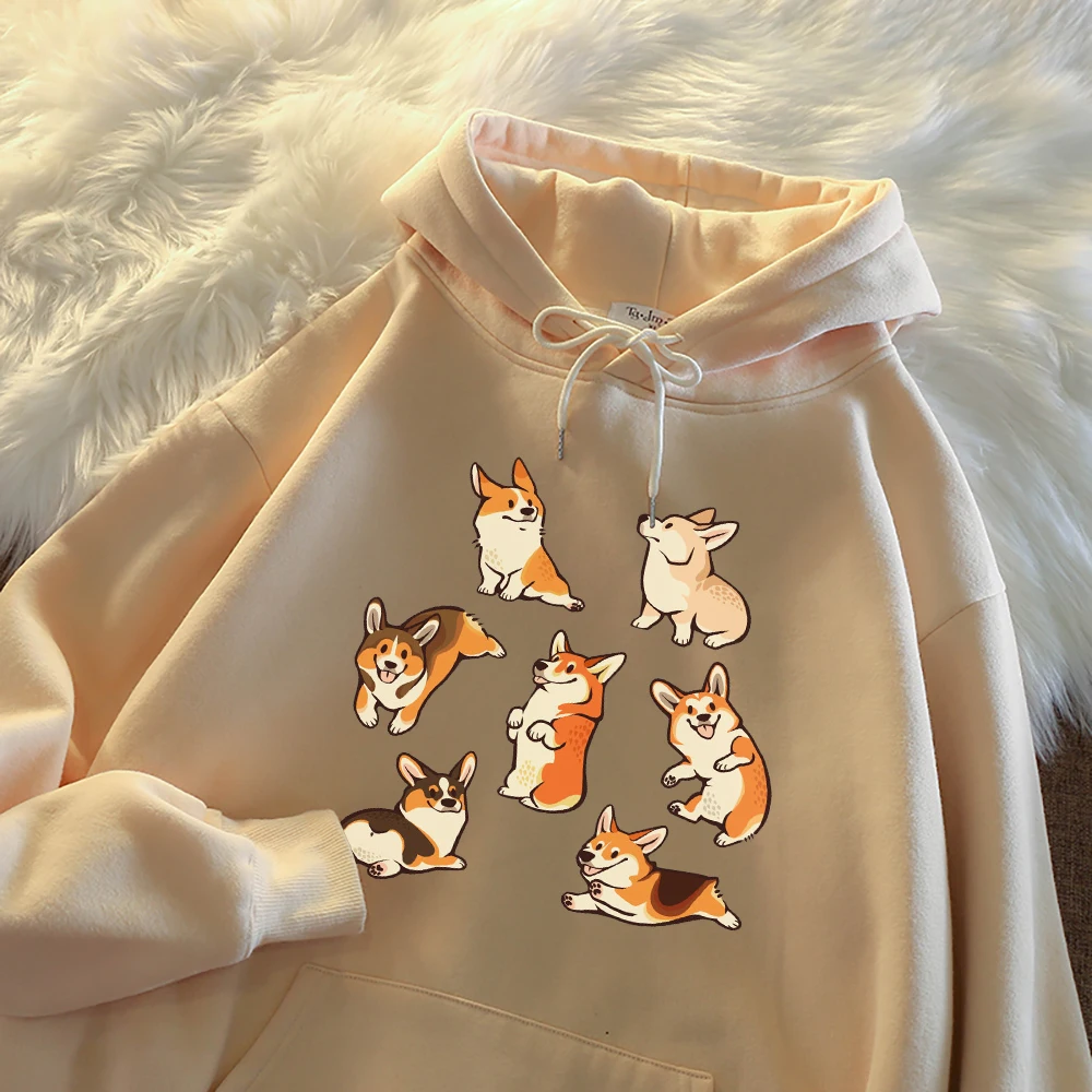7 коргис животных Собака уличная печать толстовка женская модная повседневная одежда осенняя Теплая Флисовая Толстовка Оверсайз свободная с капюшоном