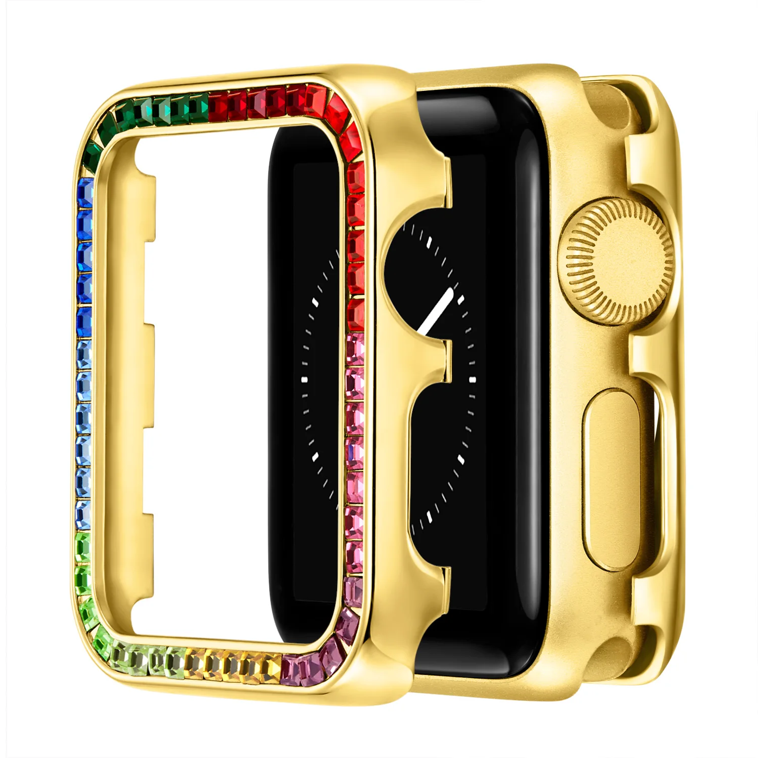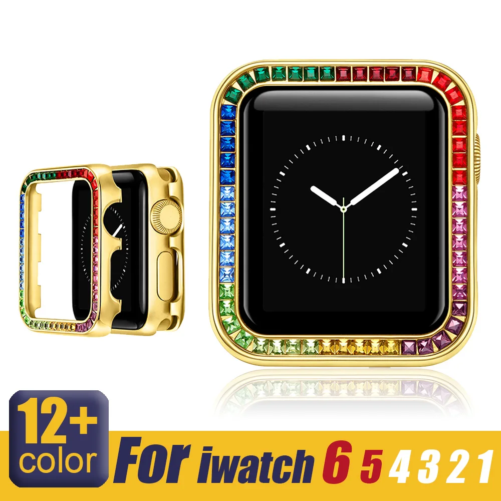 Блестящий чехол для Apple Watch series 6, 5, 4, 3, 2, 1, SE, металлический бампер, жесткая рамка с кристаллами, защита для iWatch