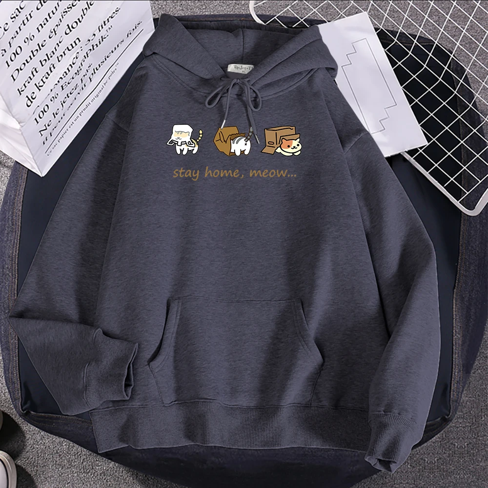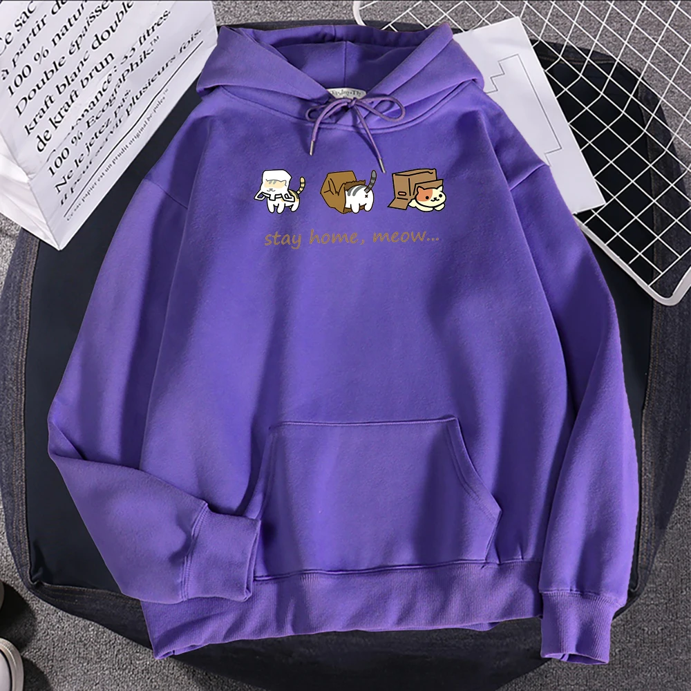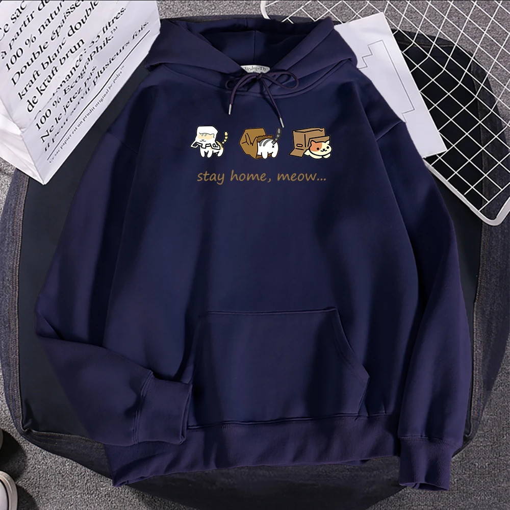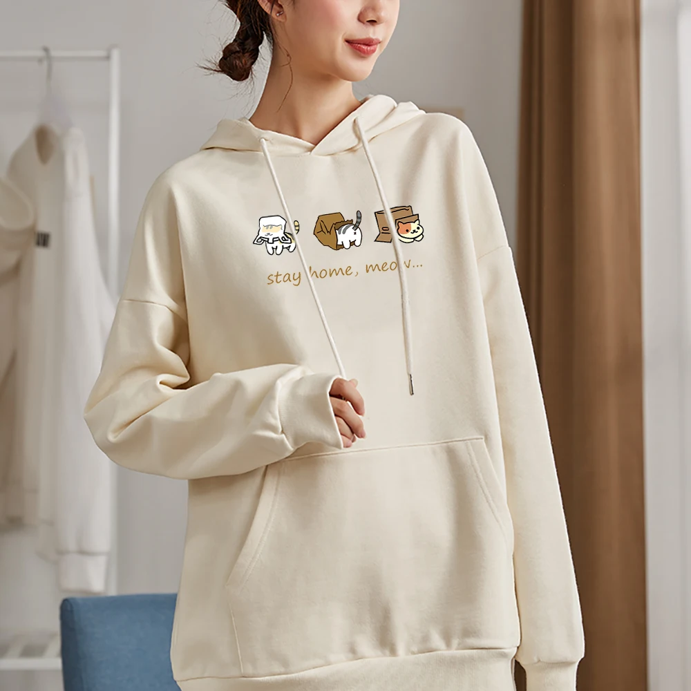 Оставайтесь дома, толстовка с капюшоном с мультипликационным принтом «Мяу коты», Женская Осенняя модная одежда, пуловер с круглым вырезом, топы, флисовая Повседневная Женская толстовка