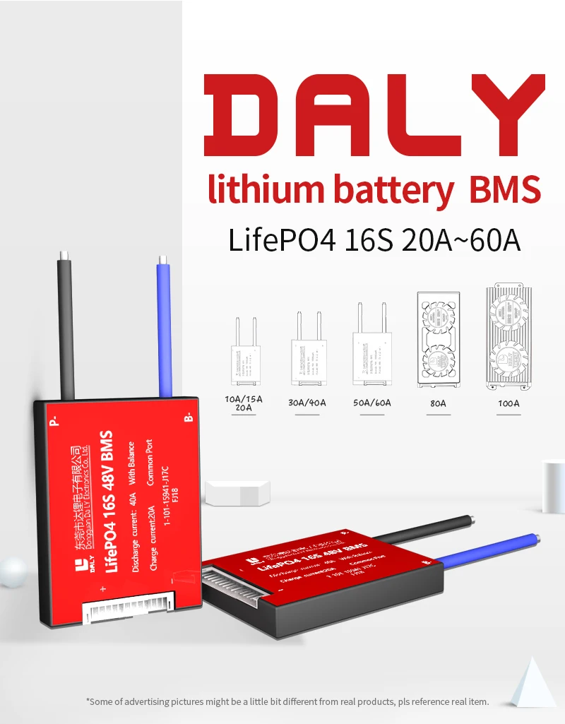 Daly 16S 48V LiFePO4 BMS 80A 100A 120A 150A 200A 250A 300A 400A 500...