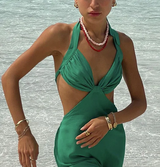 Женское пикантное Бандажное платье с лямкой на шее, модное однотонное короткое платье-трапеция с V-образным вырезом и открытой спиной