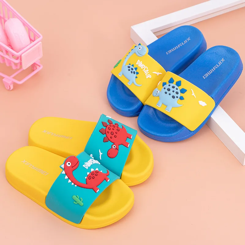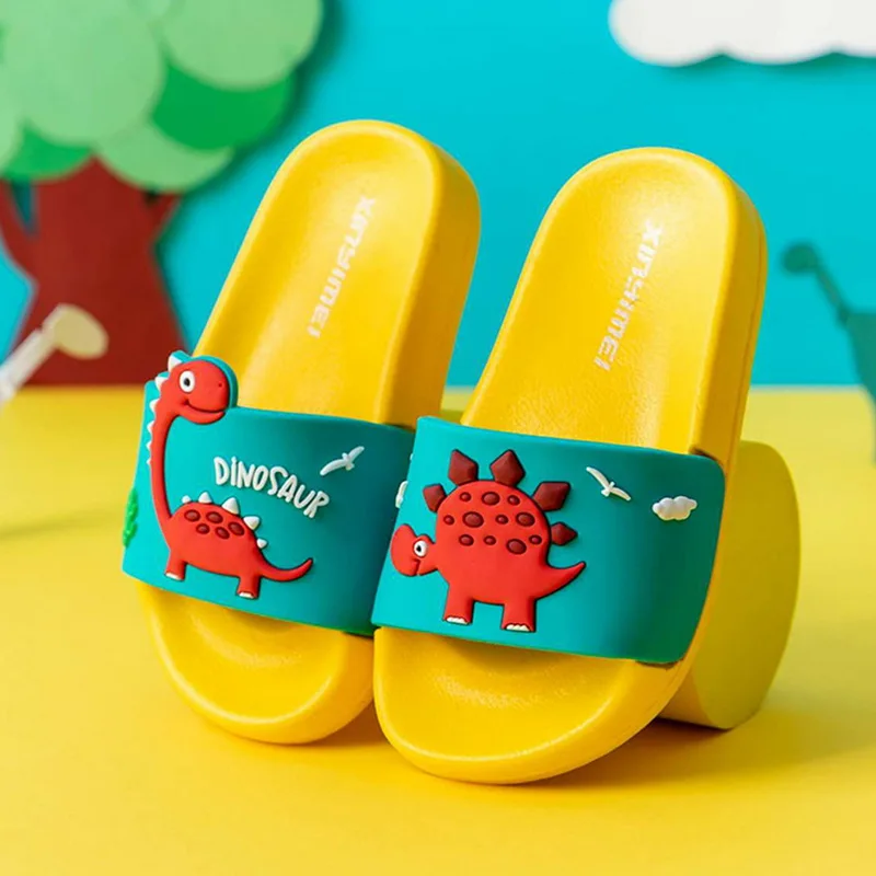Новинка лета 2021, детские противоскользящие тапочки в стиле унисекс с милым динозавром для ванной комнаты, обувь для малышей