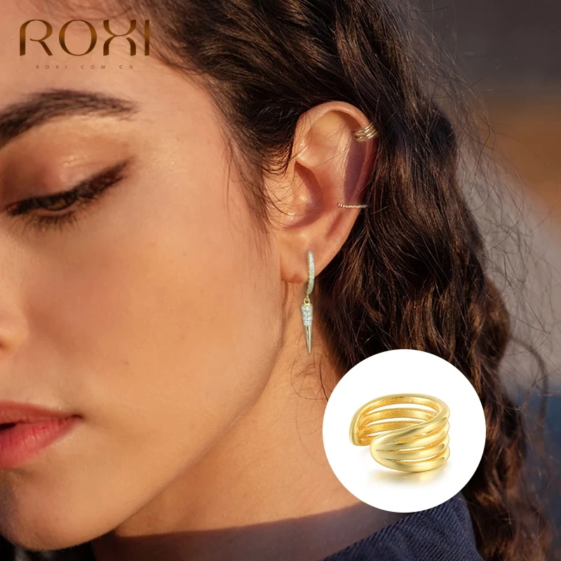 ROXI простой C Форма в виде геометрических фигур линии серьги-клипсы для женщин и девушек, серьги-манжеты не пирсинг 925 стерлингового серебра ювелирные изделия Oorbellen