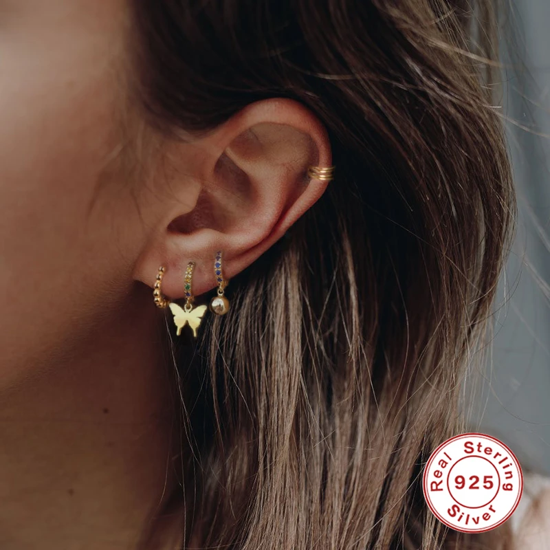 925 Sterling Silver EarringsGold/Silver Color Ear Cuff Earings