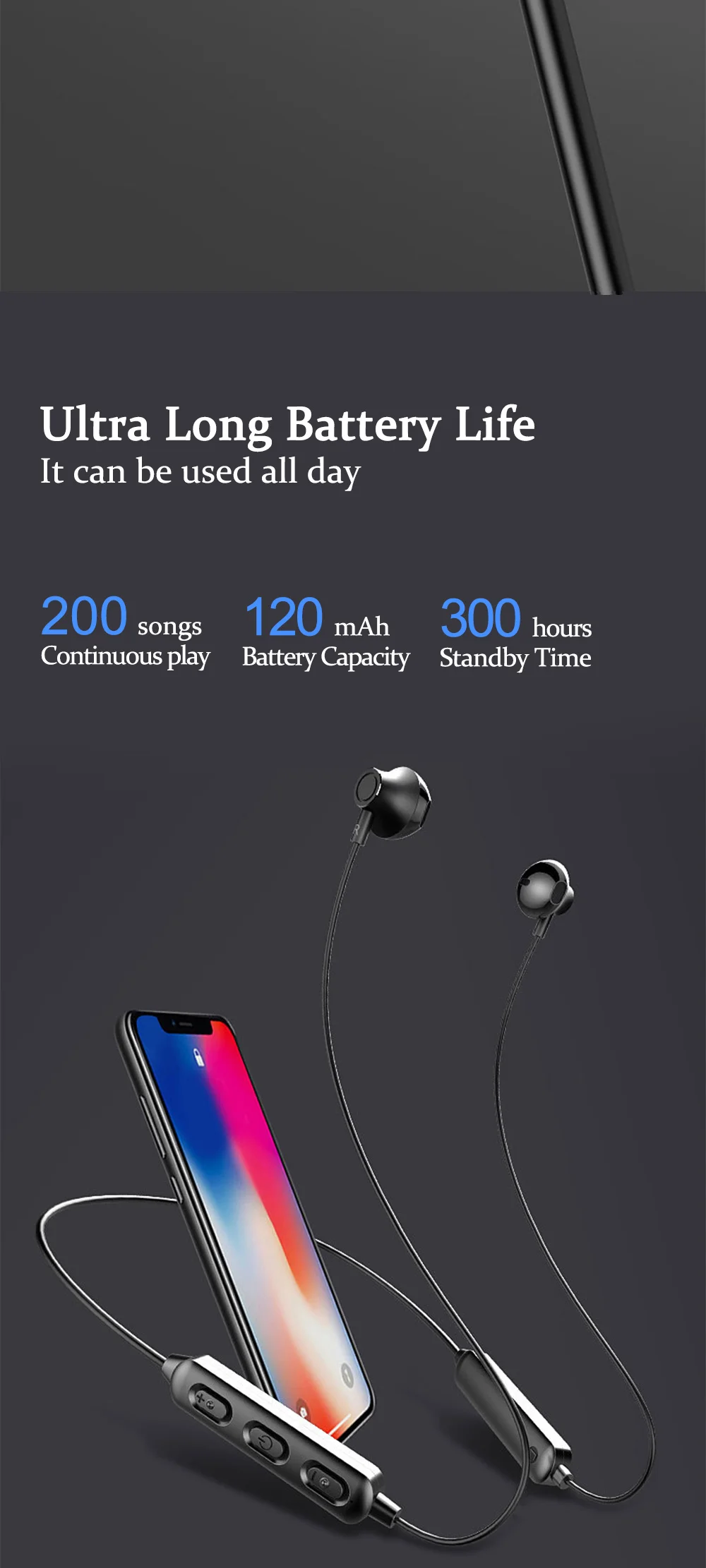 Версия Bluetooth: 5,0Емкость аккумулятора: 120 мАчВремя игры: около 20 часовВремя зарядки: около 1 часаЭффективное расстояние: 10 метровСопротивление динамика: 32 ΩЧувствительность динамика: 98 ± 3 дБПротокол поддержки: A2DP / VRCP / HFP