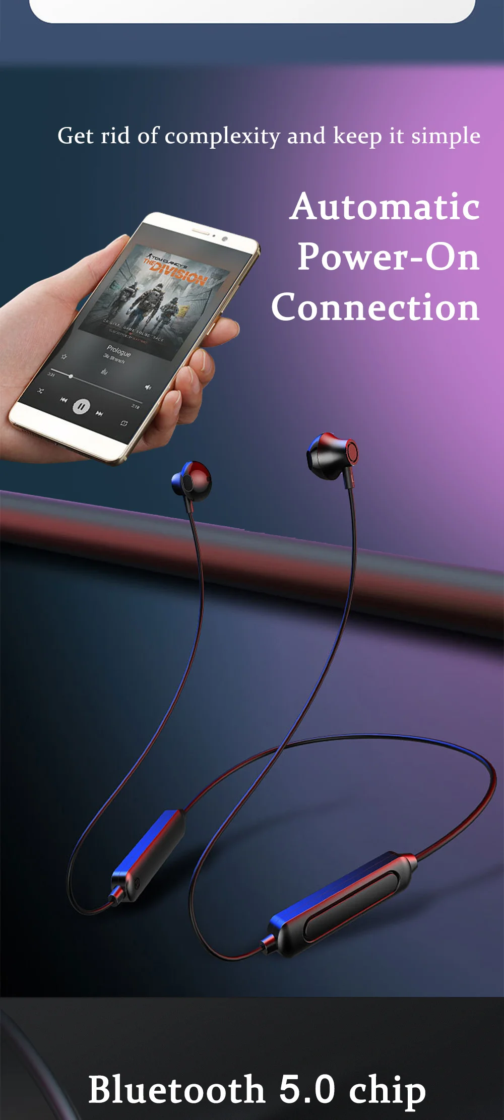 Магнитная Bluetooth-гарнитура в стиле шеи, беспроводная Спортивная гарнитура с подвесной шеей, Bluetooth 5,0, Внутриканальные наушники для бега