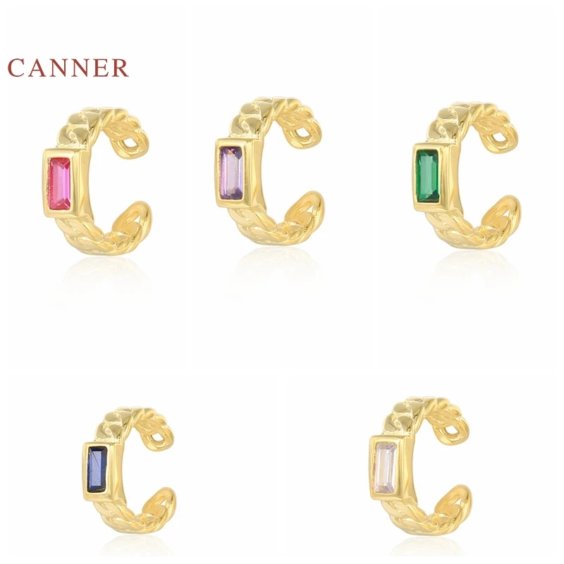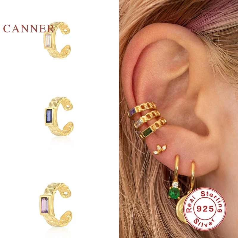 Автоклав 1 шт. 925 пробы Серебряные серьги для Для женщин квадратный Цветной циркон ухо клип пирсинг уха Pendiente подарок для мамы 2021 тенденция