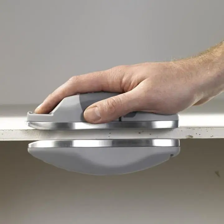 Магнитный резак для гипсокартона Mintiml состоит из двух частей: верхней и нижней, которые удерживаются вместе сильной магнитной силой и отделены складными ножками.