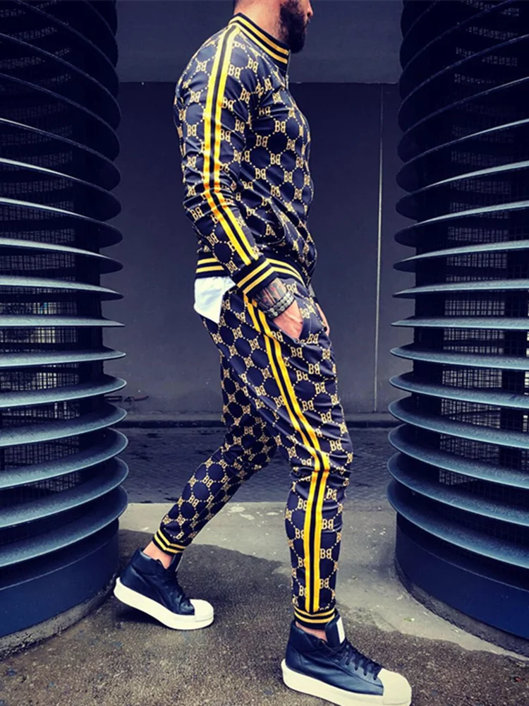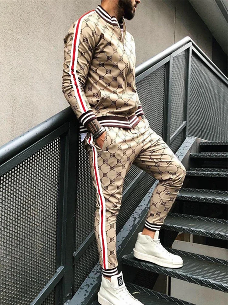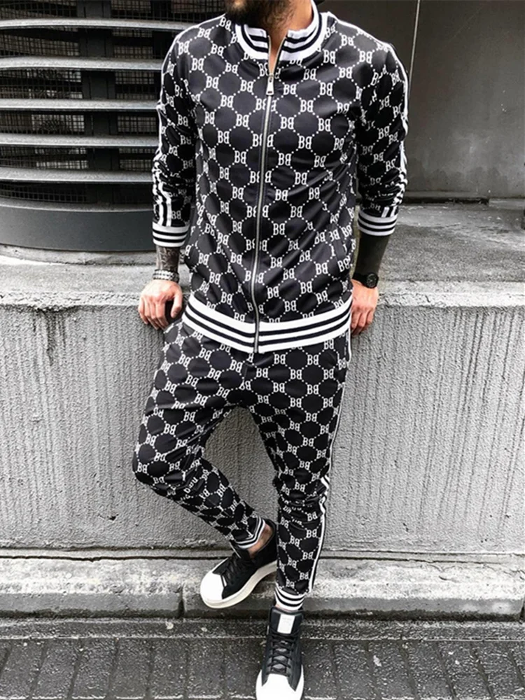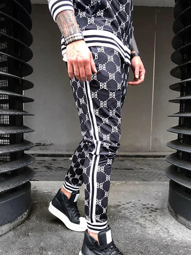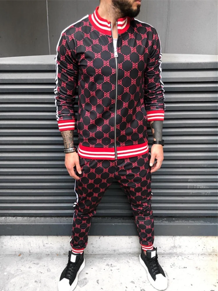 Костюм спортивный мужской с 3D-принтом, Модный свитшот для фитнеса, Приталенный кардиган на молнии, повседневный комплект из 2 предметов, пальто и брюки, осень