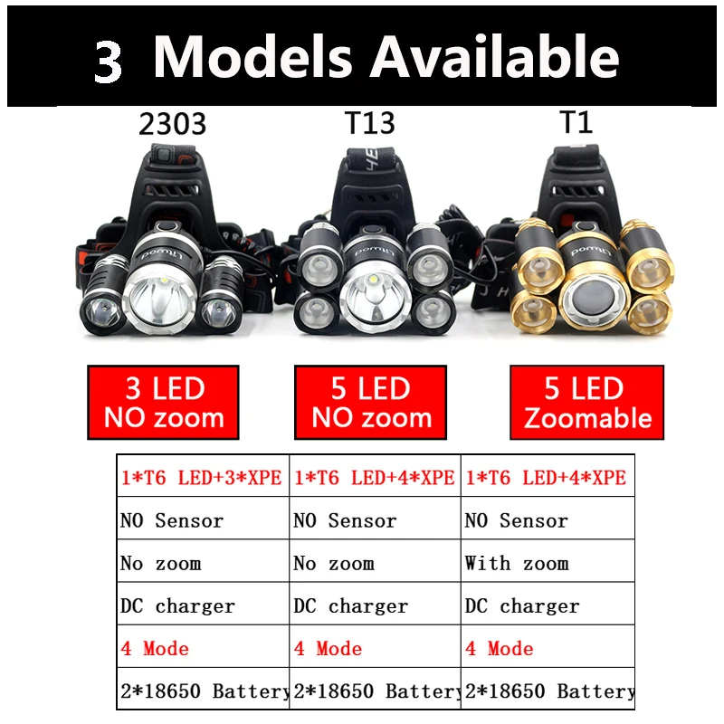 3 стиля налобный фонарь "3 светодиода без зума" "5 светодиодов без зума" 5 светодиодов Масштабируемые "вы можете выбратьОсобенности: