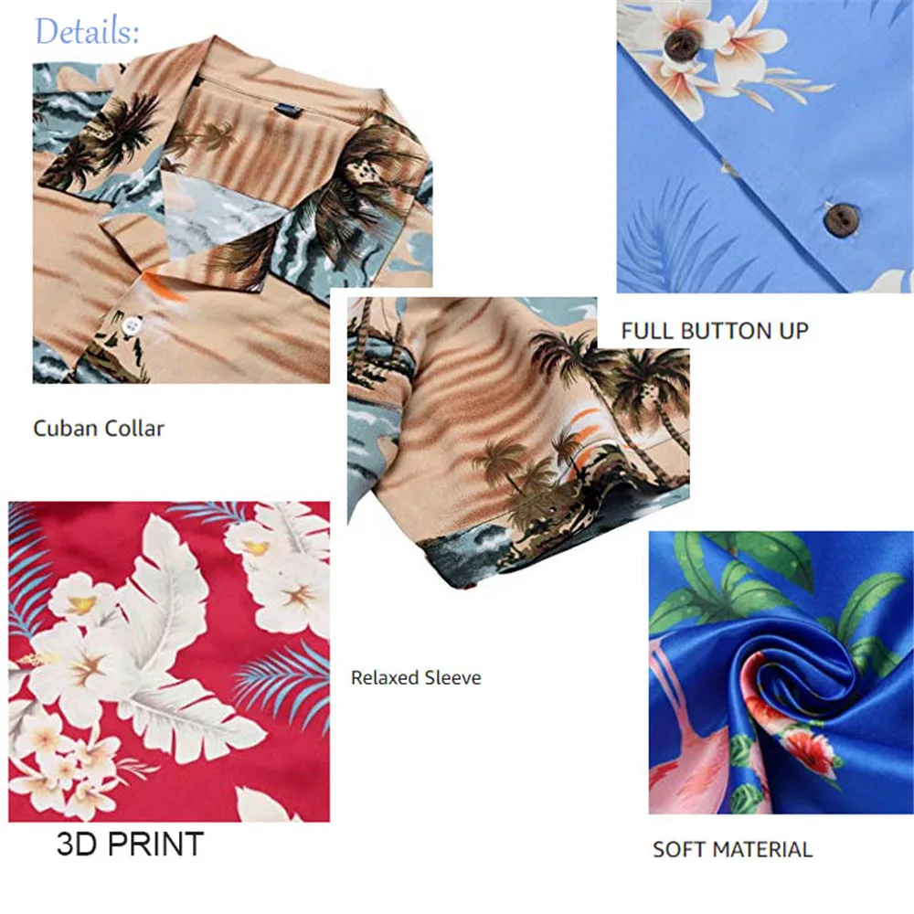 Кубинская рубашка для мужчин, мужская летняя рубашка из гавайской т...