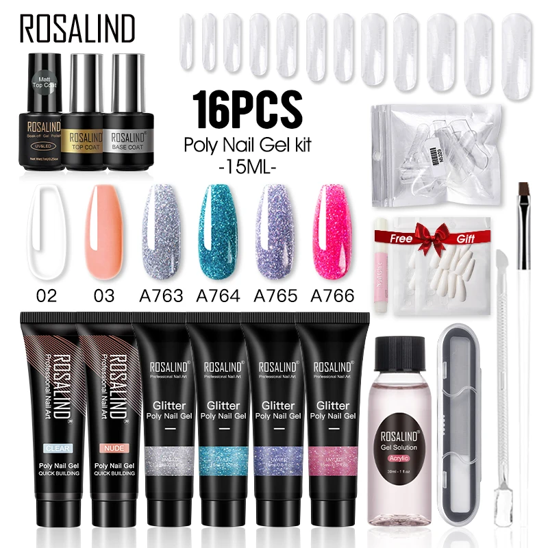 Гель-лак для наращивания ногтей ROSALIND, 15 мл, набор гелей для ногтей дюйма, набор для дизайна ногтей