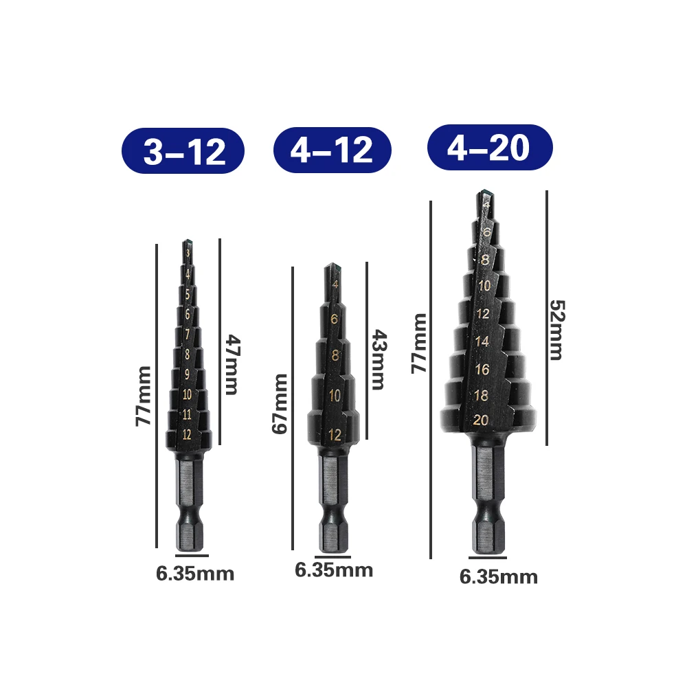 31/4" Step Cone Taper Drill Bit Set Metric Metal Hex Drill Bits