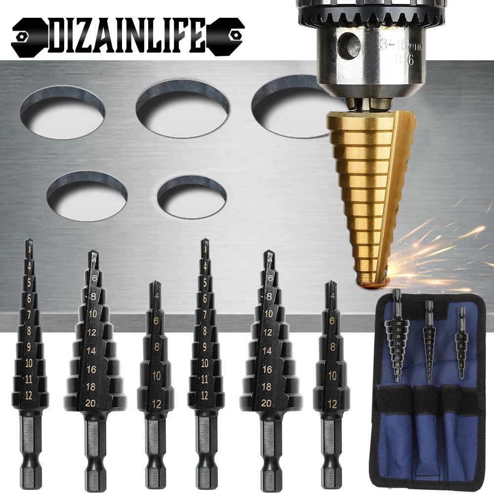 3-124-204-12 ступенчатое сверло из быстрорежущей стали с прямым пазом, набор резцов для отверстий по дереву и металлу, пагода с титановым покрытием, сверлильный электроинструмент