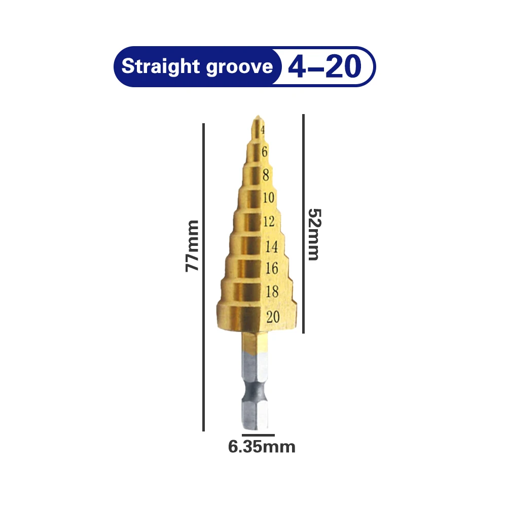 4Stepped Drill Bits 1/4 Hex Drill Bit Wood Metal Drilling Tool
