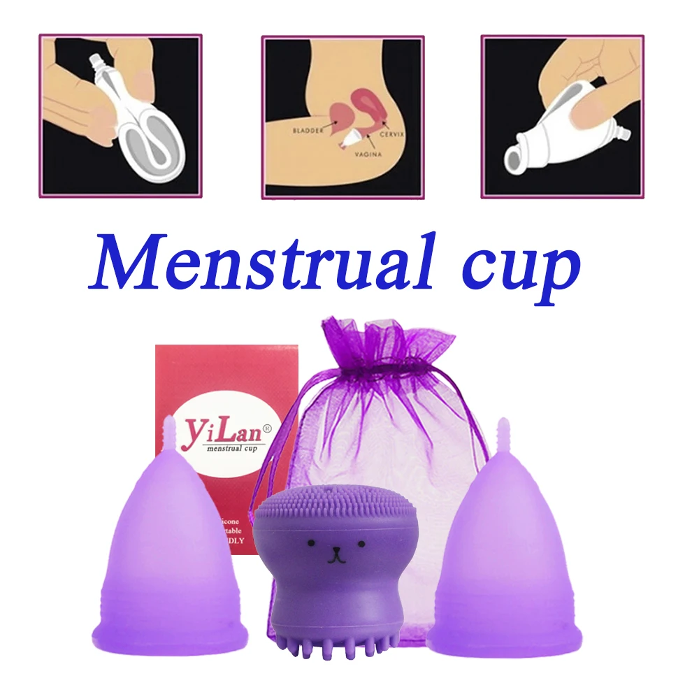 2 шт., многоразовые менструальные чаши из 100% силикона для женщин