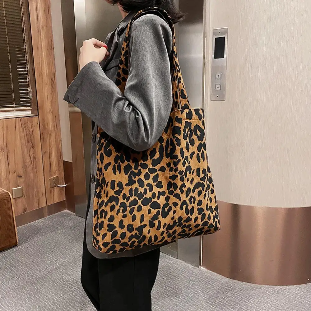 Сумка женская Вельветовая с леопардовым принтом зебры, модный саквояж на плечо, вместительный тоут для покупок, 2021
