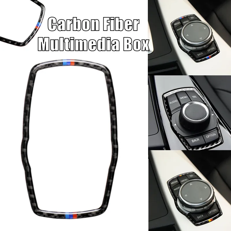 Автомобильная рамка из углеродного волокна для BMW, медиа-кнопка, наклейка, ручка, крышка для F10 F20 F30 F34 F07 F25 F26 F15 F16 F-лучшая интерьерная наклейка s