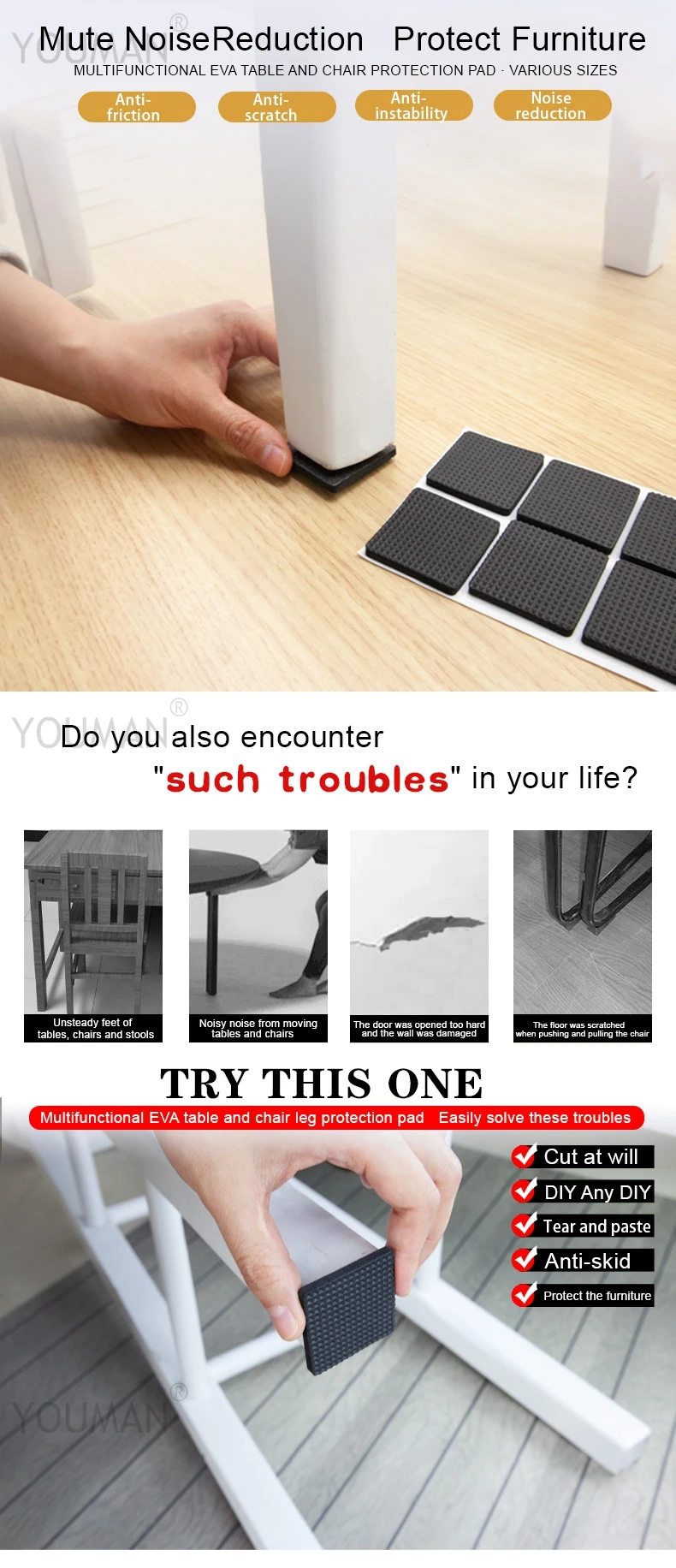 Посылка в комплекте: 1 комплект х уплотненные противоскользящие многофункциональные коврики для мебели, защитные подушечки для ног