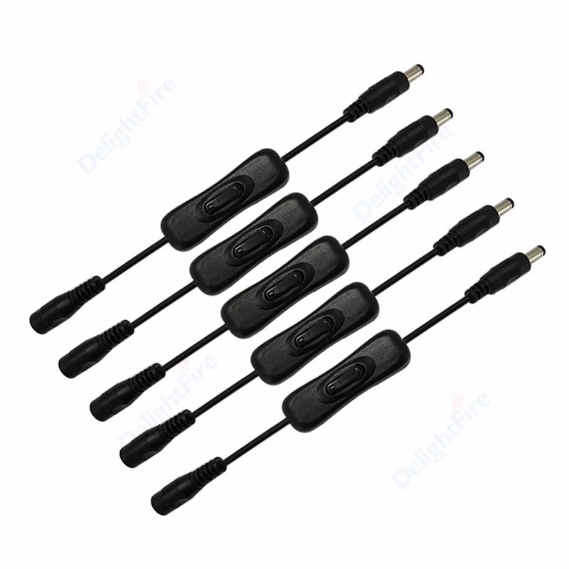 Светодиодный выключатель 5,5x2,1 мм, штекер-гнездо, Удлинительный кабель питания постоянного тока, 12 В, кнопочный переключатель, кабели постоянного тока для светодиодной ленты