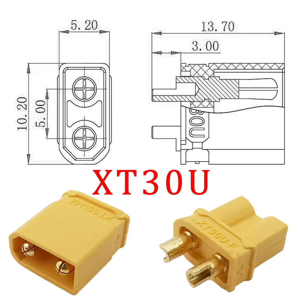 Название продукта: штепсельная вилка XT30Цвет: желтыйПол: мужской, женскийМатериал корпуса: медьМатериал корпуса: PAТип: разъем XT30XT30 мужской размер: 13x10x5 мм (Д * Ш * В)XT30 женский размер: 13x10x3,8 мм (Д * Ш * В)Температурное сопротивление: -20 °C - 120 °CРекомендуемый калибр провода: 16awg,20AWG силиконовый провод.Полуоткрытый конец, легче для сварки.