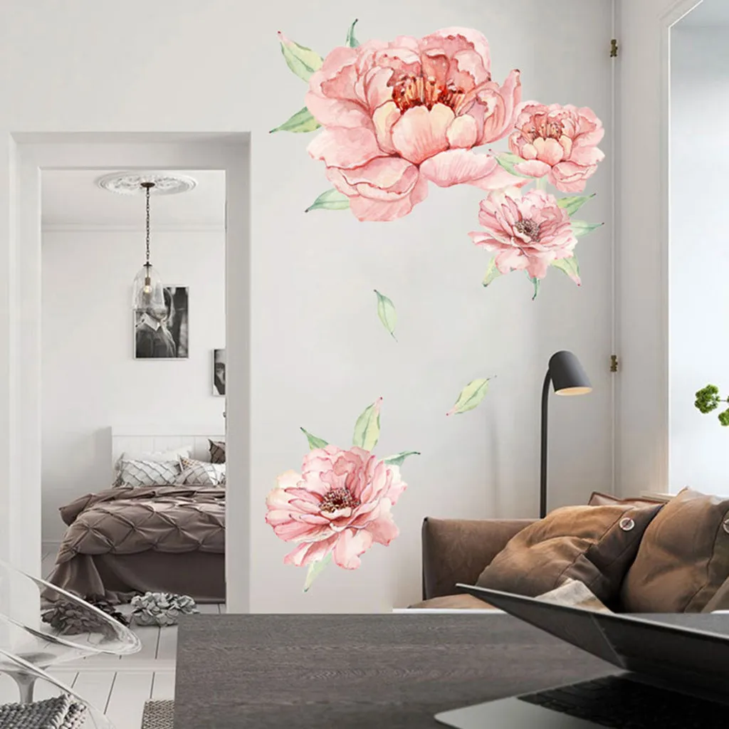 Пион розы цветы стикер на стену искусство Наклейки для детской комнаты, домашний декор, подарок