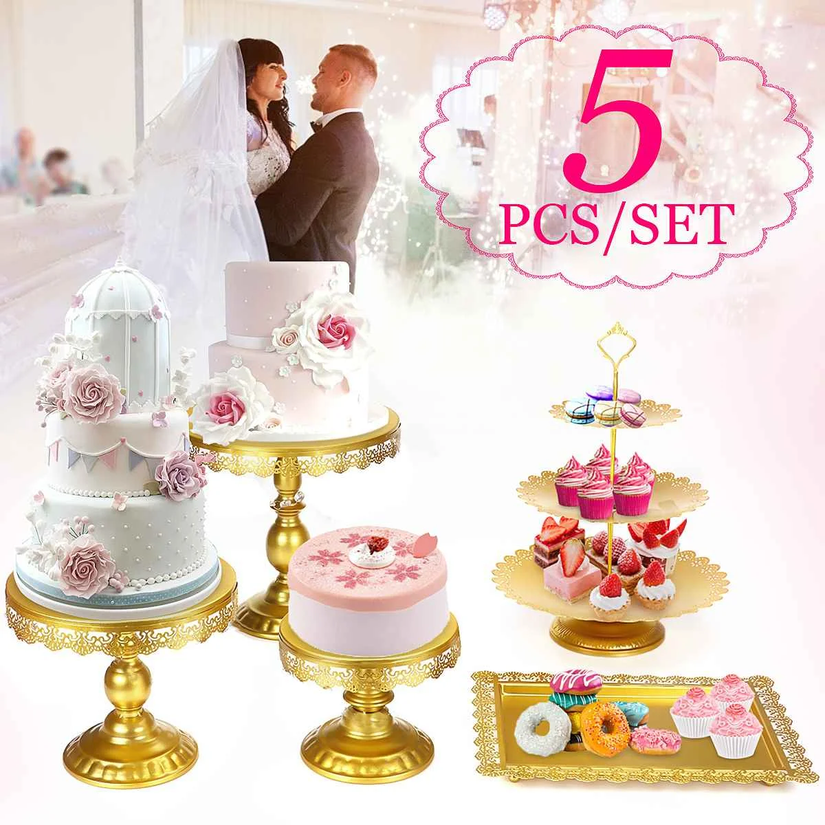 5 шт., Золотистый металлический держатель для торта