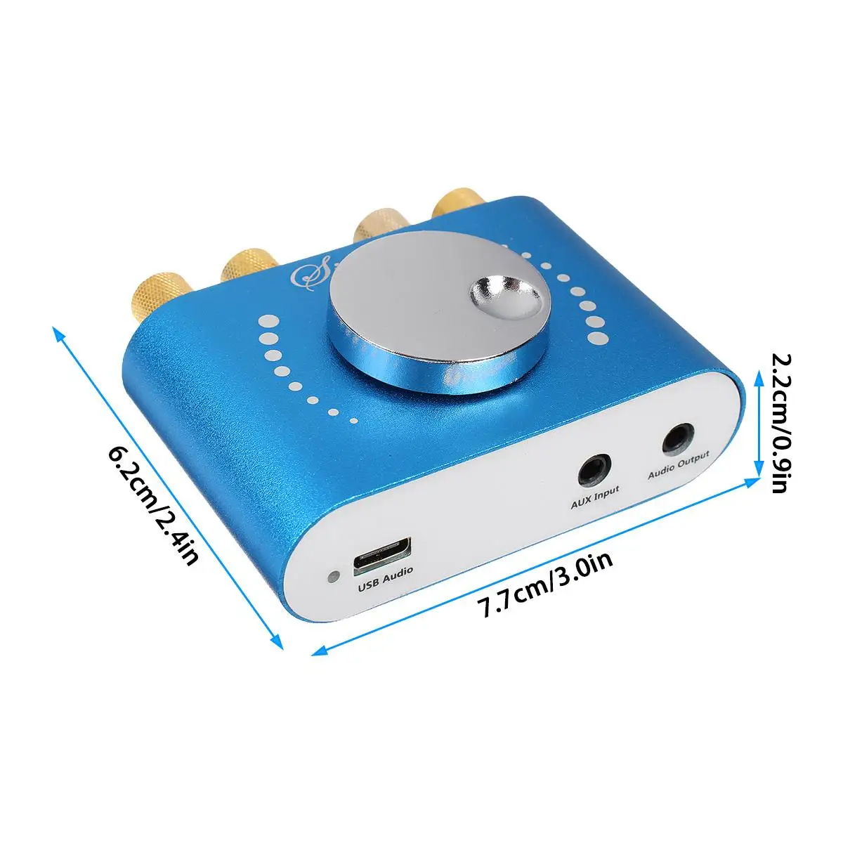 Характеристики:Название продукта: усилитель мощностиМодель: XY-KA15HЦвет: синийКанал: 2,0 CHBluetooth: поддержкаВходное напряжение: 8-24 В постоянного токаМощность RMS: 20 Вт + 20 ВтМаксимальная выходная мощность: 200 Вт + 200 ВтРасстояние передачи: 15 м (без препятствий)Метод ввода: bluetooth + AUX + U диск + USB звуковая картаМеханизм защиты: защита от обратного подключения источника питания, защита от короткого замыкания, защита от перегрева от самовосстановления.Размер: 7,7*6,2*2,2 см/3.0x2.4x0.9in
