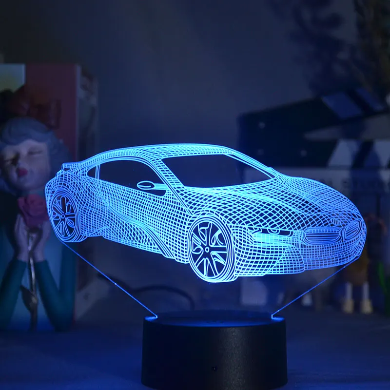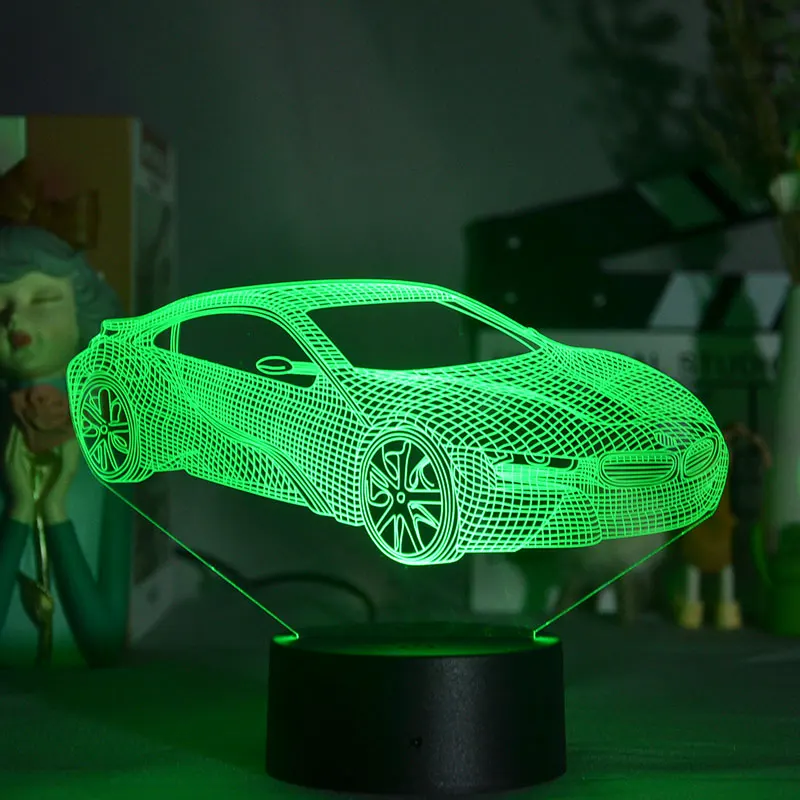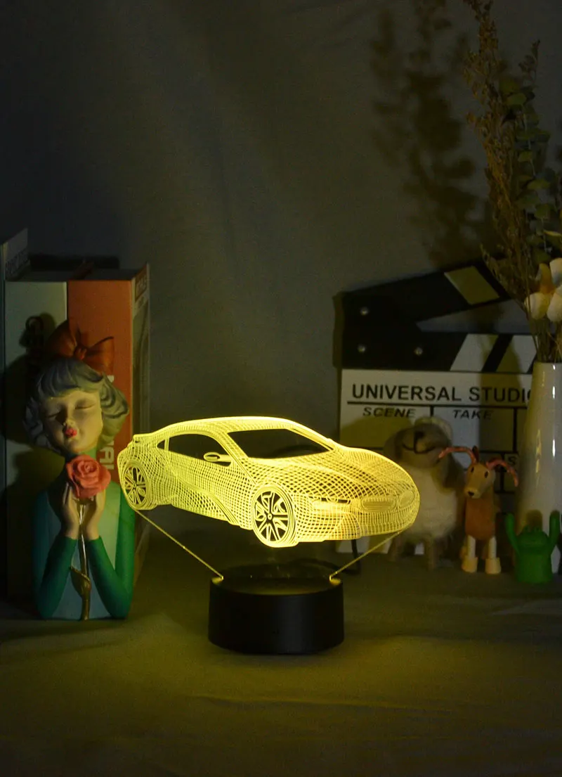 Крутая форма спортивной машины 3D светодиодный иллюзионный автомобильный ночник для мальчиков любящий подарок Детская прикроватная настольная лампа для спальни светодиодный датчик света