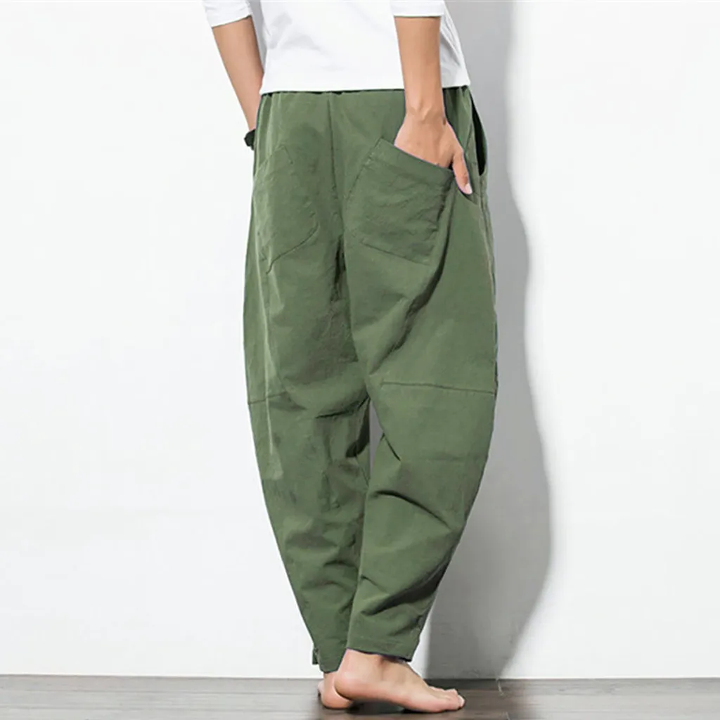 Мужские повседневные Модные свободные брюки из хлопка и льна, однот...