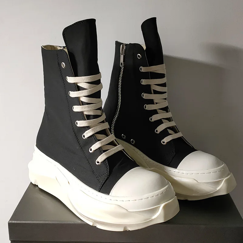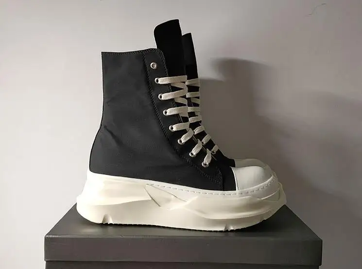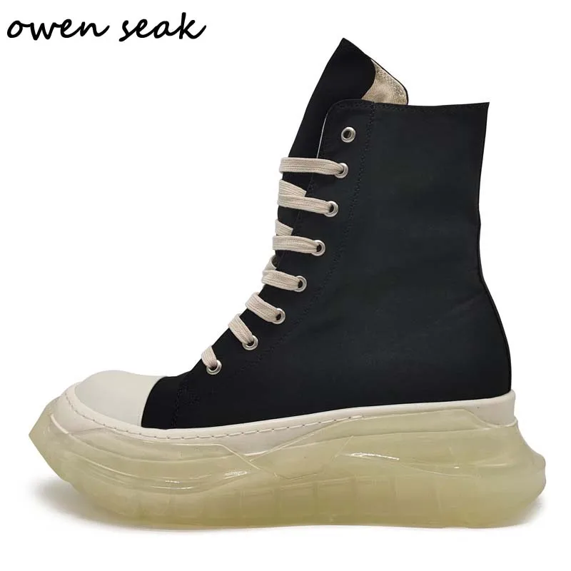 21ss Owen Seak Мужская парусиновая обувь роскошные кроссовки ботинки на шнуровке на каждый день; Женская обувь, увеличивающая рост, на молнии, с высоким берцем на плоской подошве на шнурках черные кроссовки