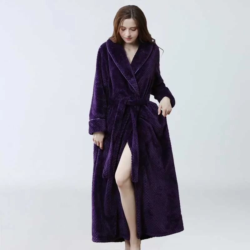 Женский длинный халат, фланелевый пушистый зимний однотонный женский халат с v-образным вырезом и длинным рукавом, одежда для сна, мягкая махровая домашняя одежда для женщин