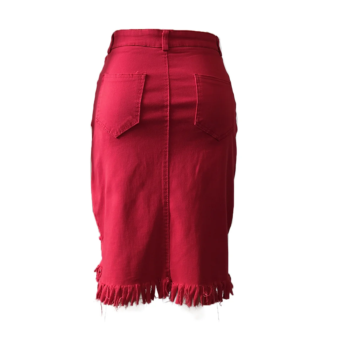 Новая женская джинсовая юбка с дырками, однобортная юбка с начесом ...