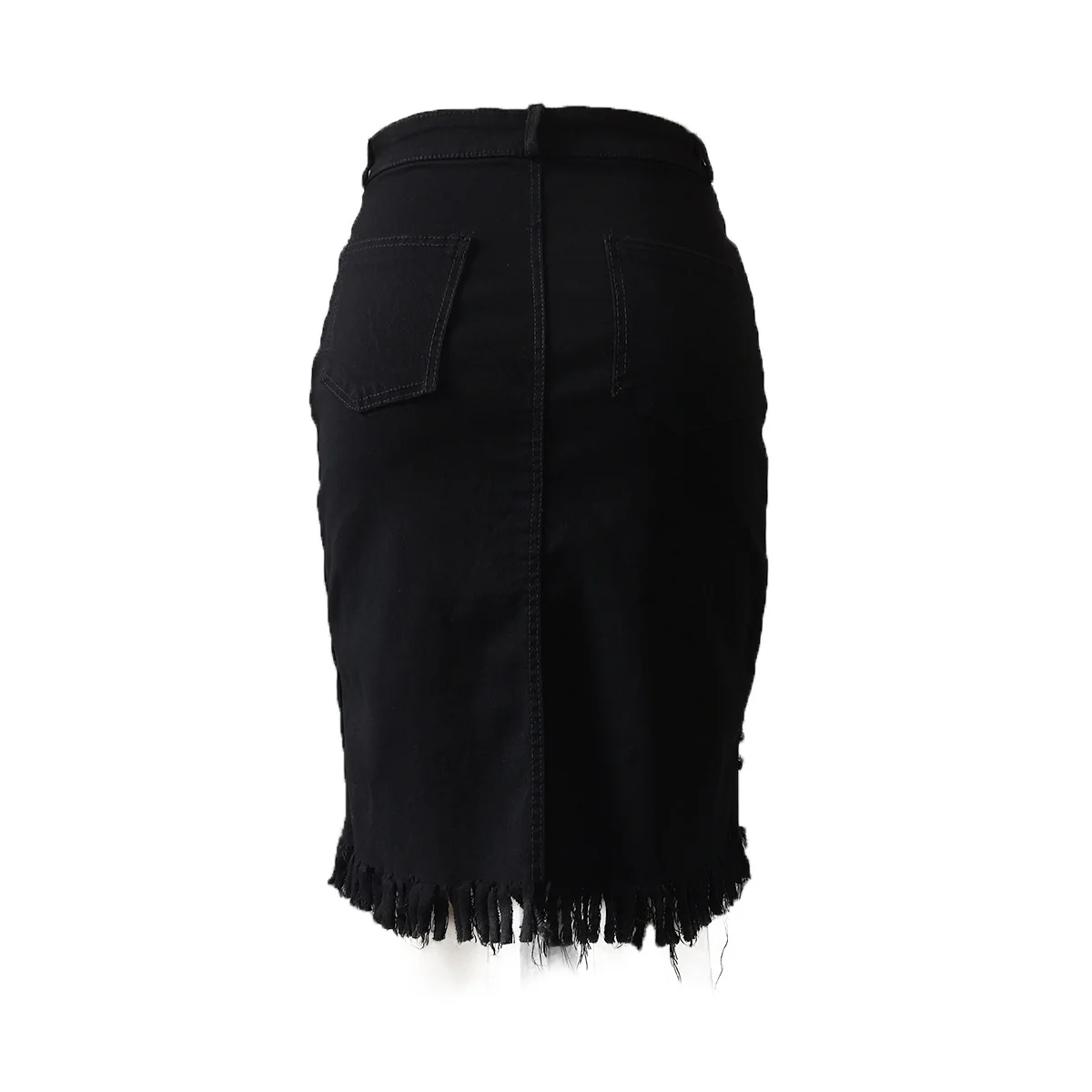 Женская джинсовая юбка с отверстиями, однобортная мини-юбка с начес...