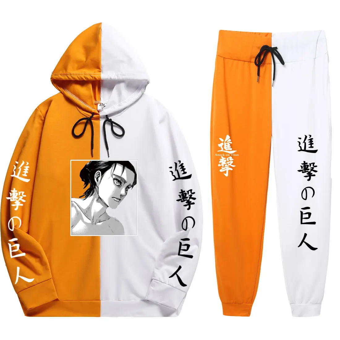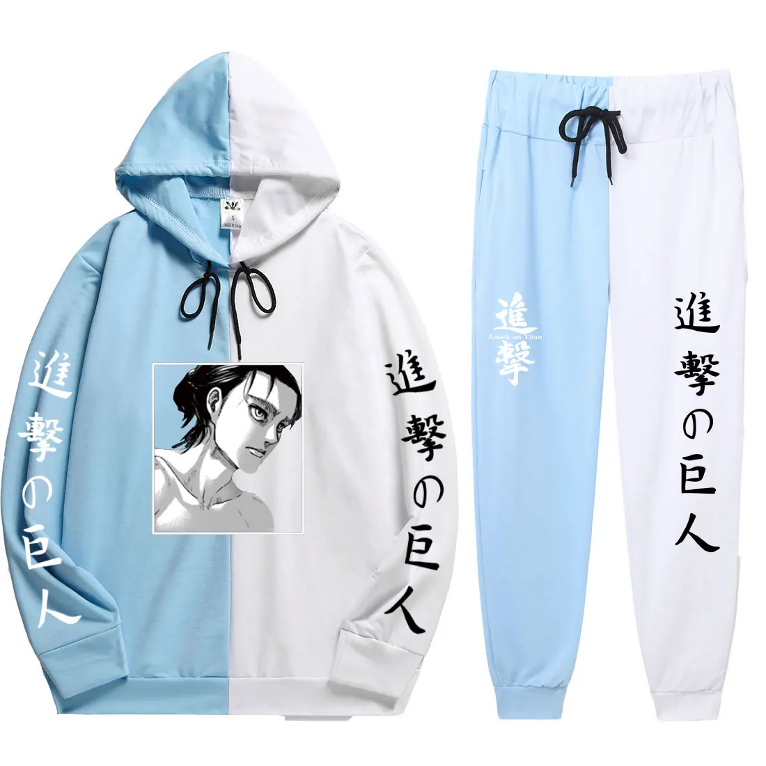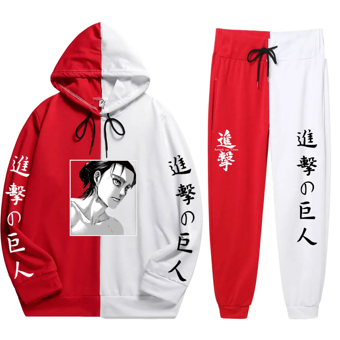 Летний комплект из 2 предметов с принтом в стиле аниме Атака Титанов, тонкая толстовка с капюшоном в стиле пэчворк + штаны в стиле Харадзюку