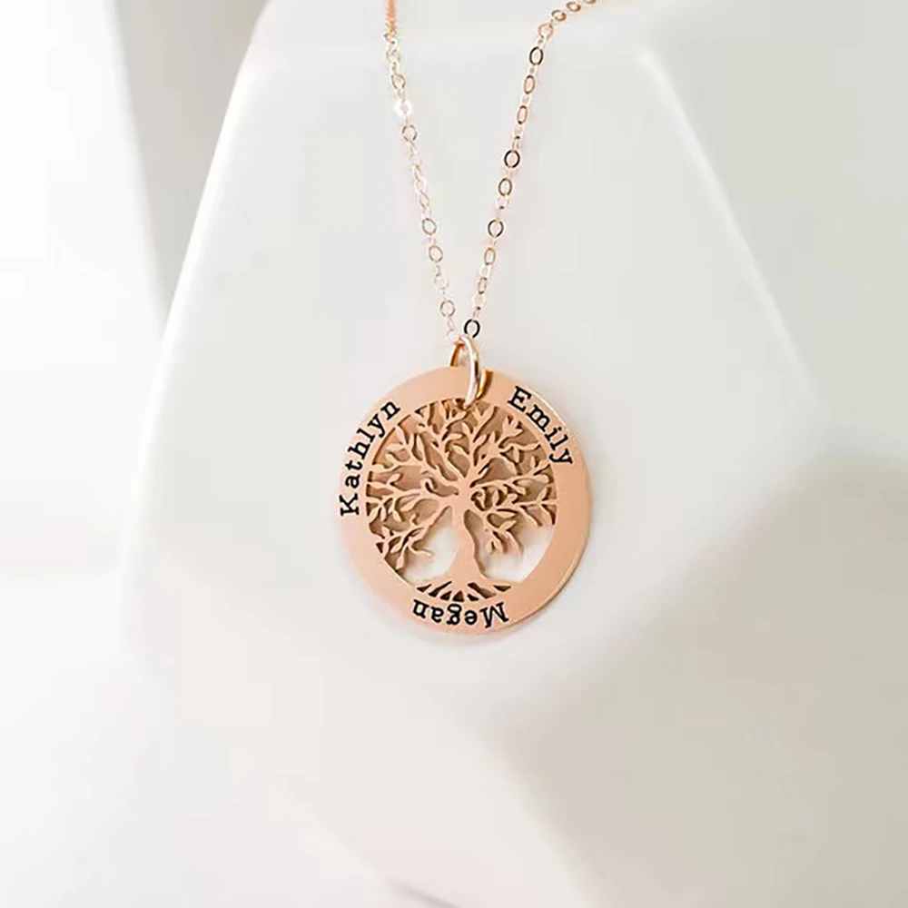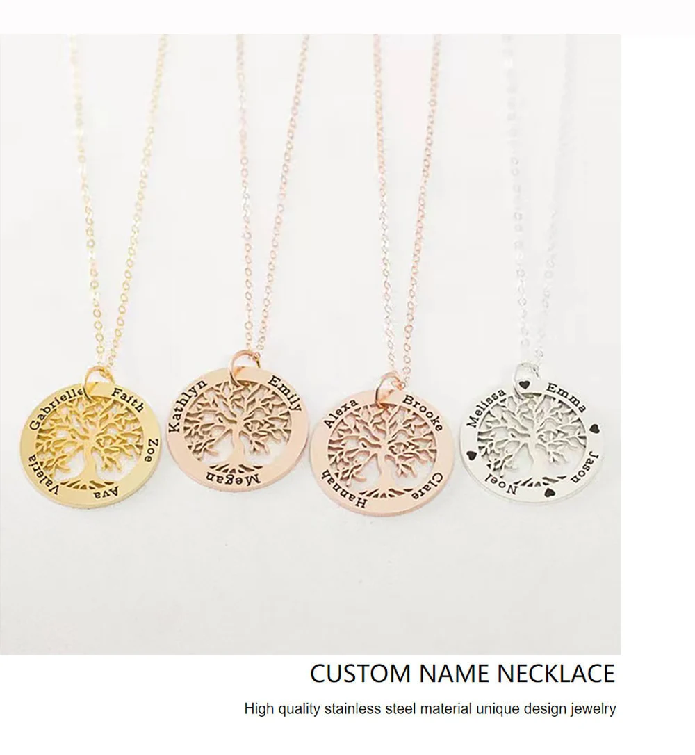 HUHUI индивидуальное ожерелье с гравировкой 1-5 именами индивидуальное ожерелье с кулоном из дерева жизни Женская семейная бижутерия из нержавеющей стали Рождественский подарок