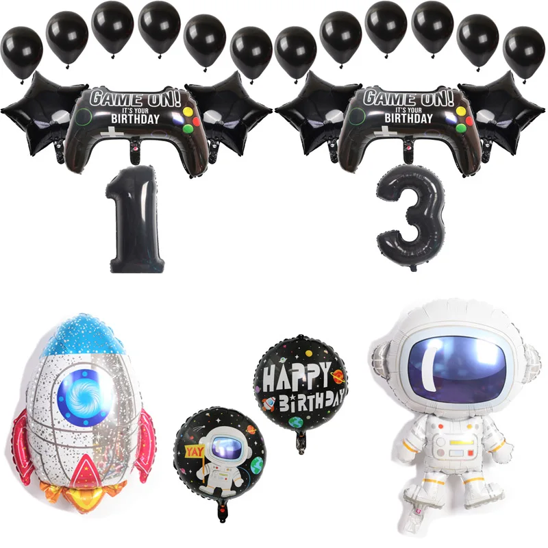 Игровой контроллер, алюминиевая фольга, воздушный шар для дня рождения, 32 дюйма, номер гигантской ракета, космонавт, фольга, воздушный шар для мальчиков, надувная игрушка