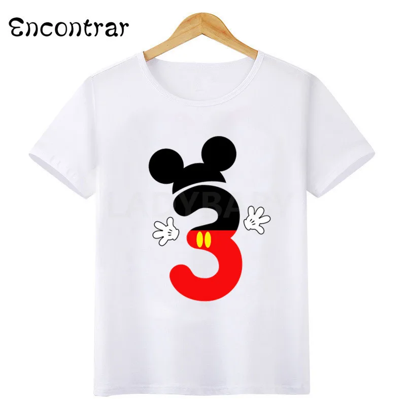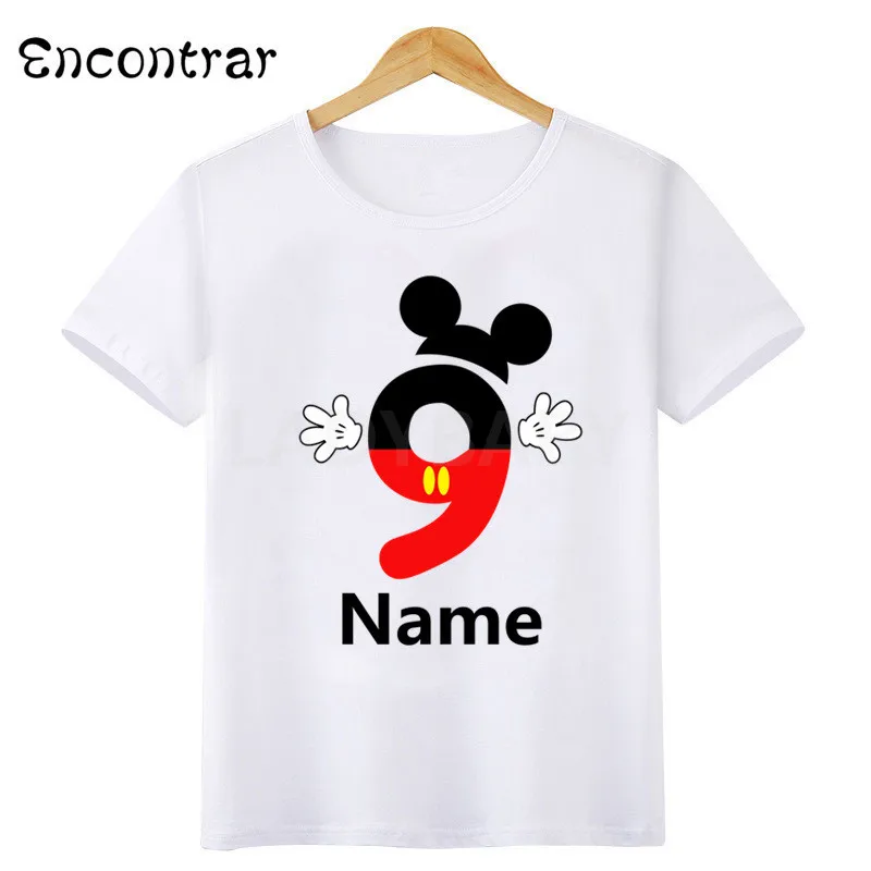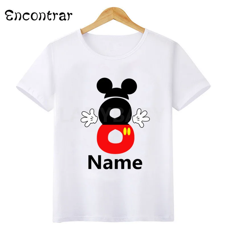 Футболка с принтом имени ребенка, с изображением мыши, для мальчиков и девочек, с днем рождения, с цифрами 1-10, с бантом, модная футболка, детские топы