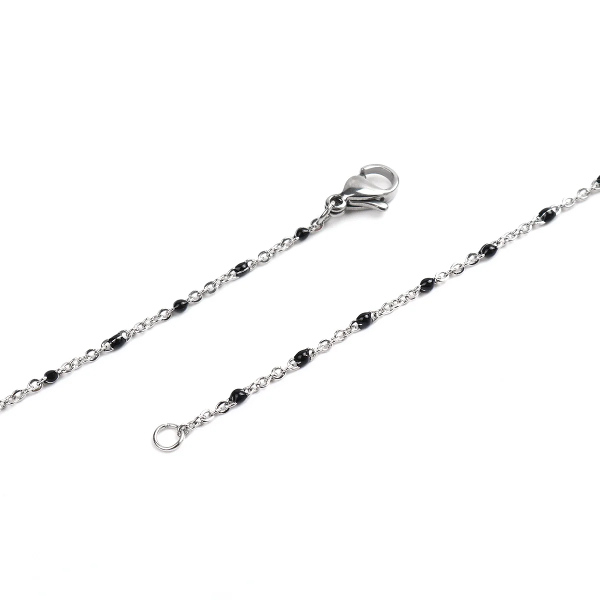1 шт. модное ожерелье из нержавеющей стали, серебряный цвет, эмалированные звенья, кабельная цепь, ожерелье для женщин, ювелирные изделия, подарки, 45 см 50 см 60 см в длину